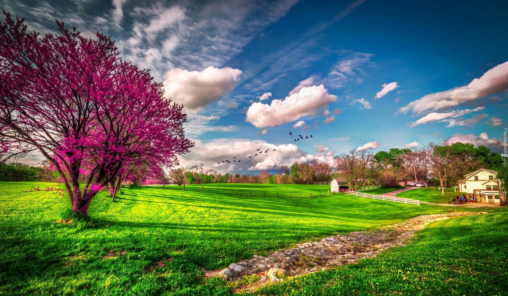 Edytor tapety: Łąki, Farma, Wiosna, Wieś