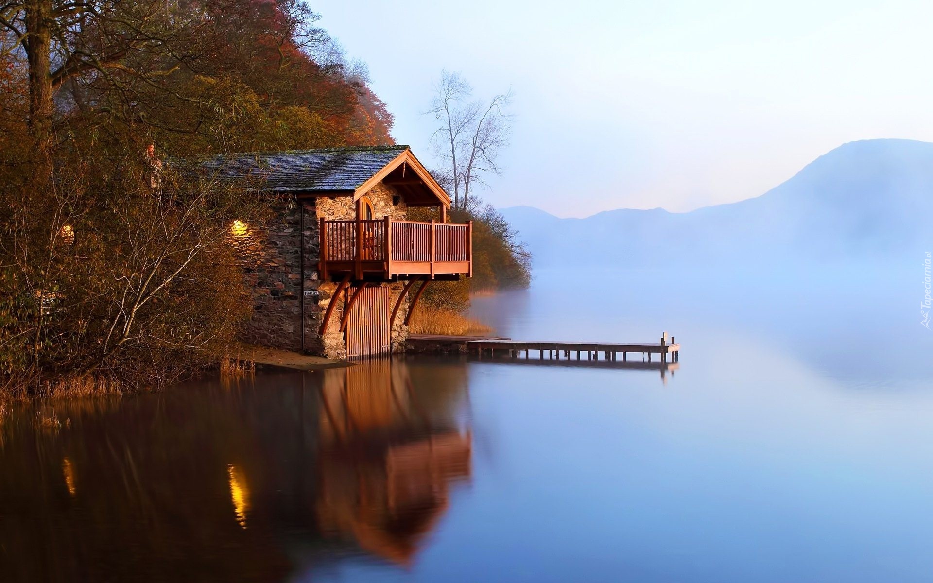 Edytor tapety: Krajobraz, Jezioro, Domek