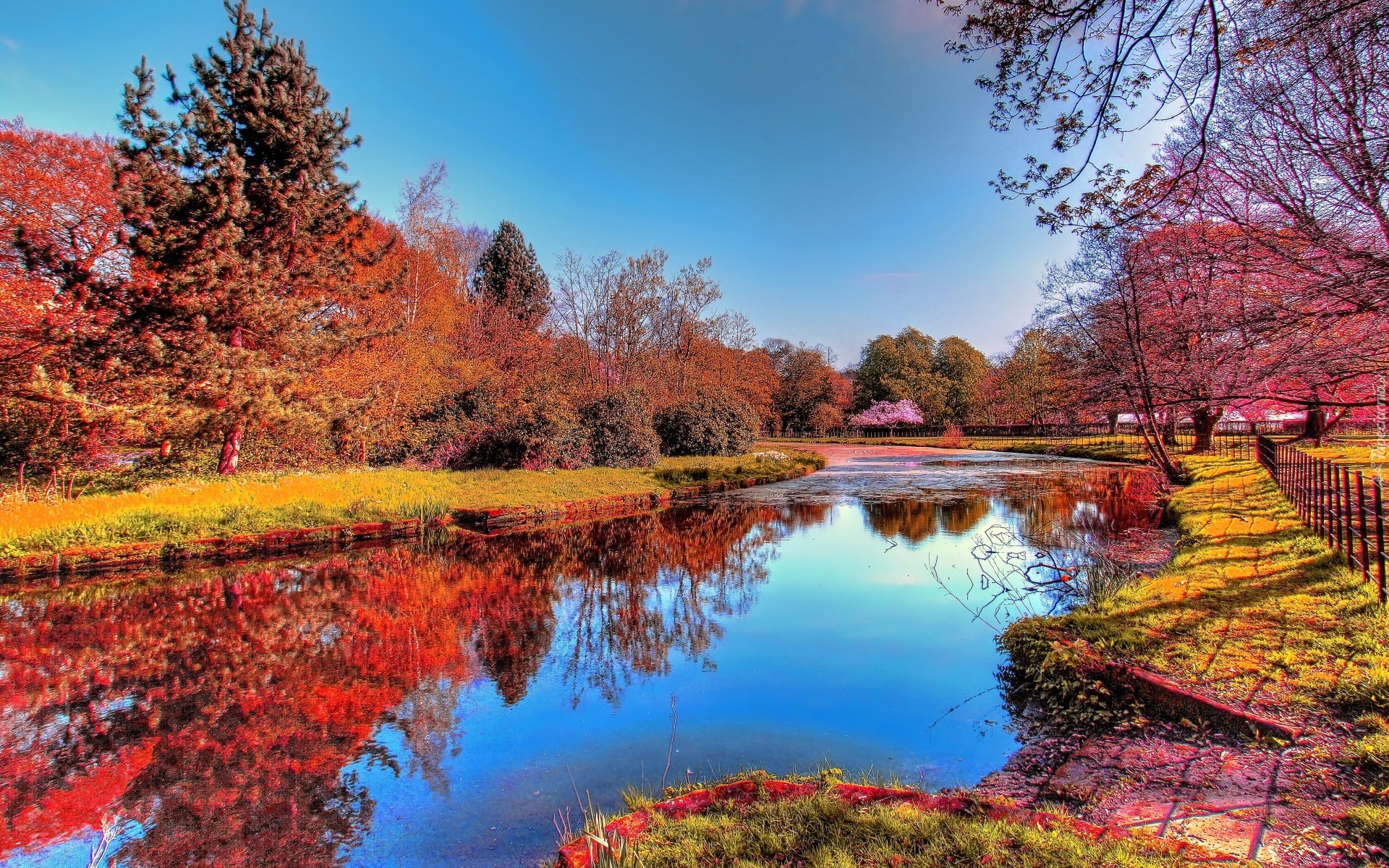 Edytor tapety: Jesień, Drzewa, Rzeka