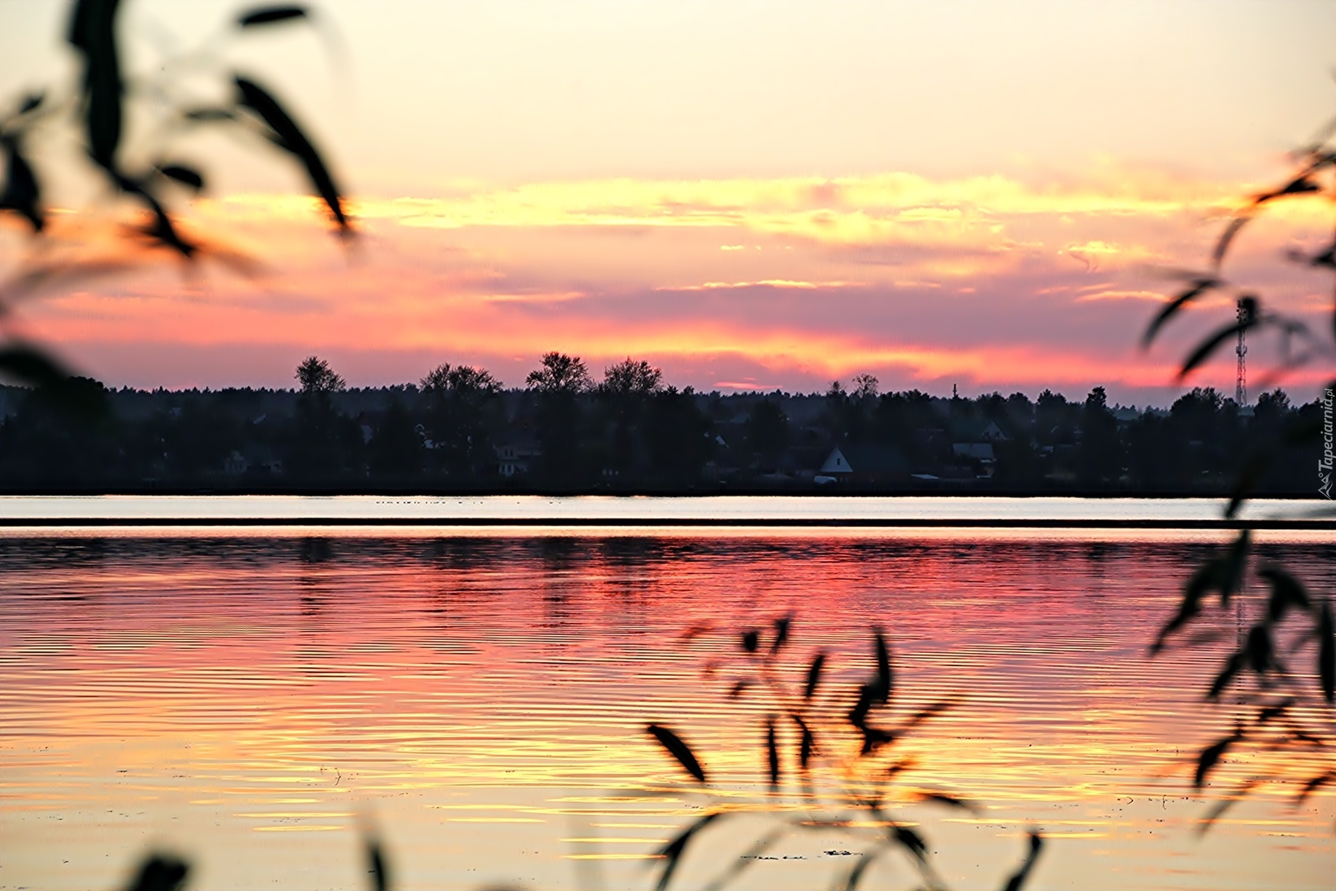Edytor tapety: Rzeka, Wieś, Zachód Słońca, Odbicie