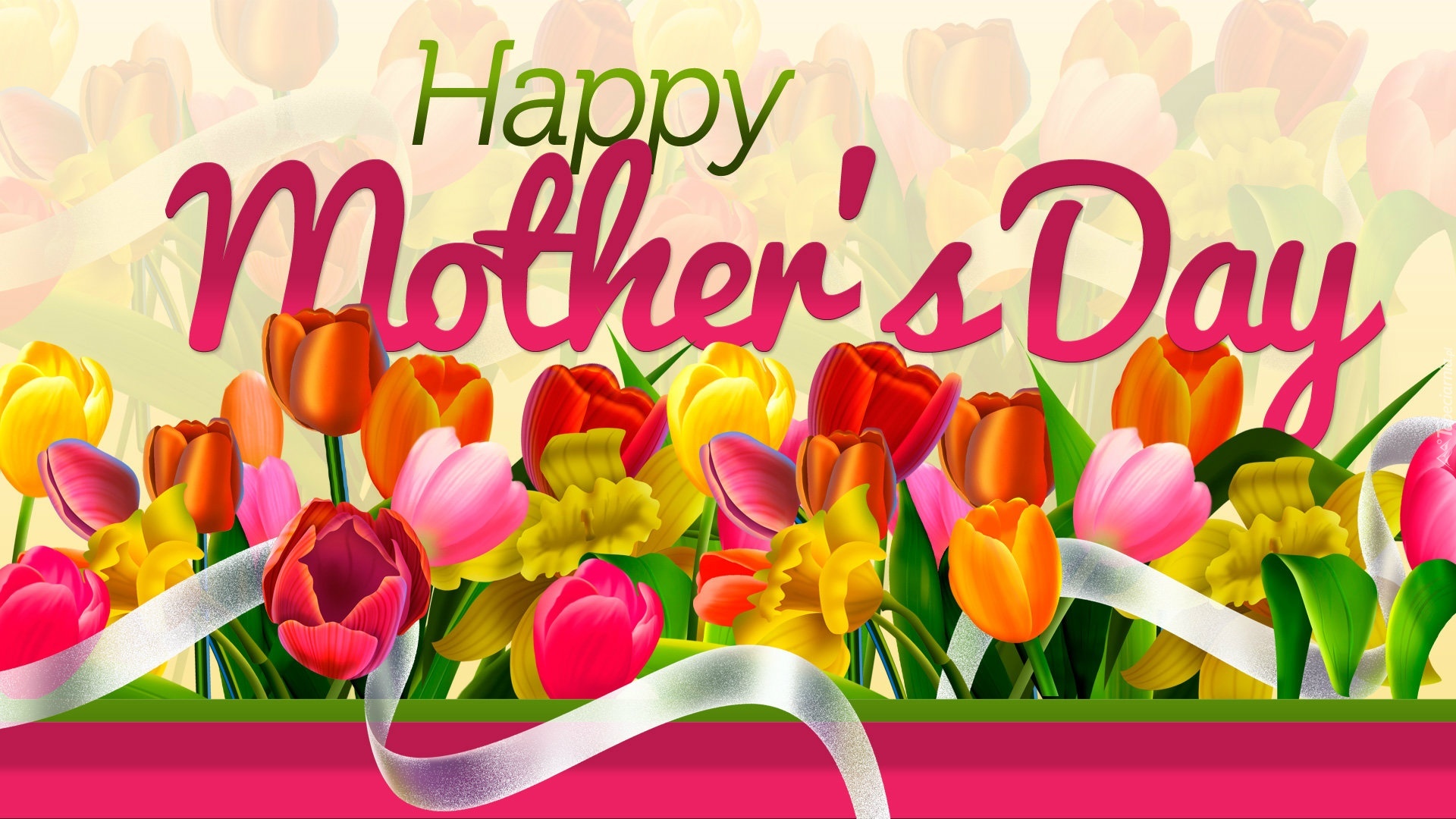 Edytor tapety: Dzień Matki, Tulipany, Wstążka