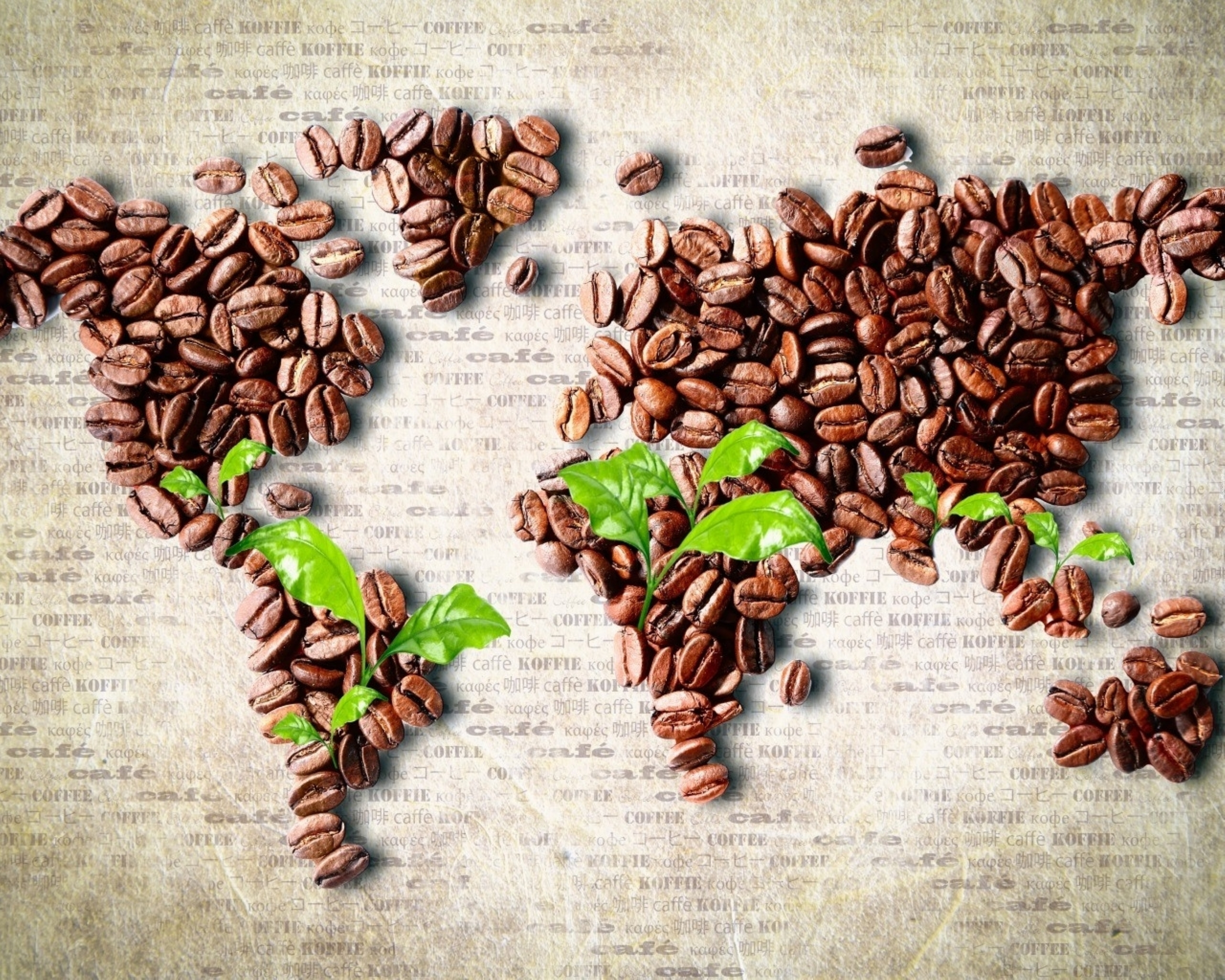 Edytor tapety: Kawa, Ziarenka, Mapa, Listki