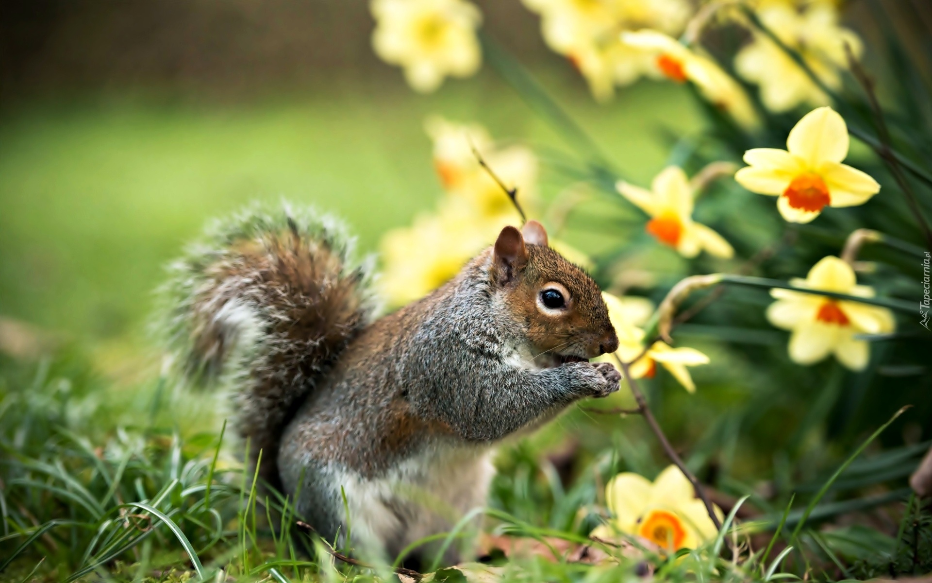 Edytor tapety: Wiewiórka, Żonkile