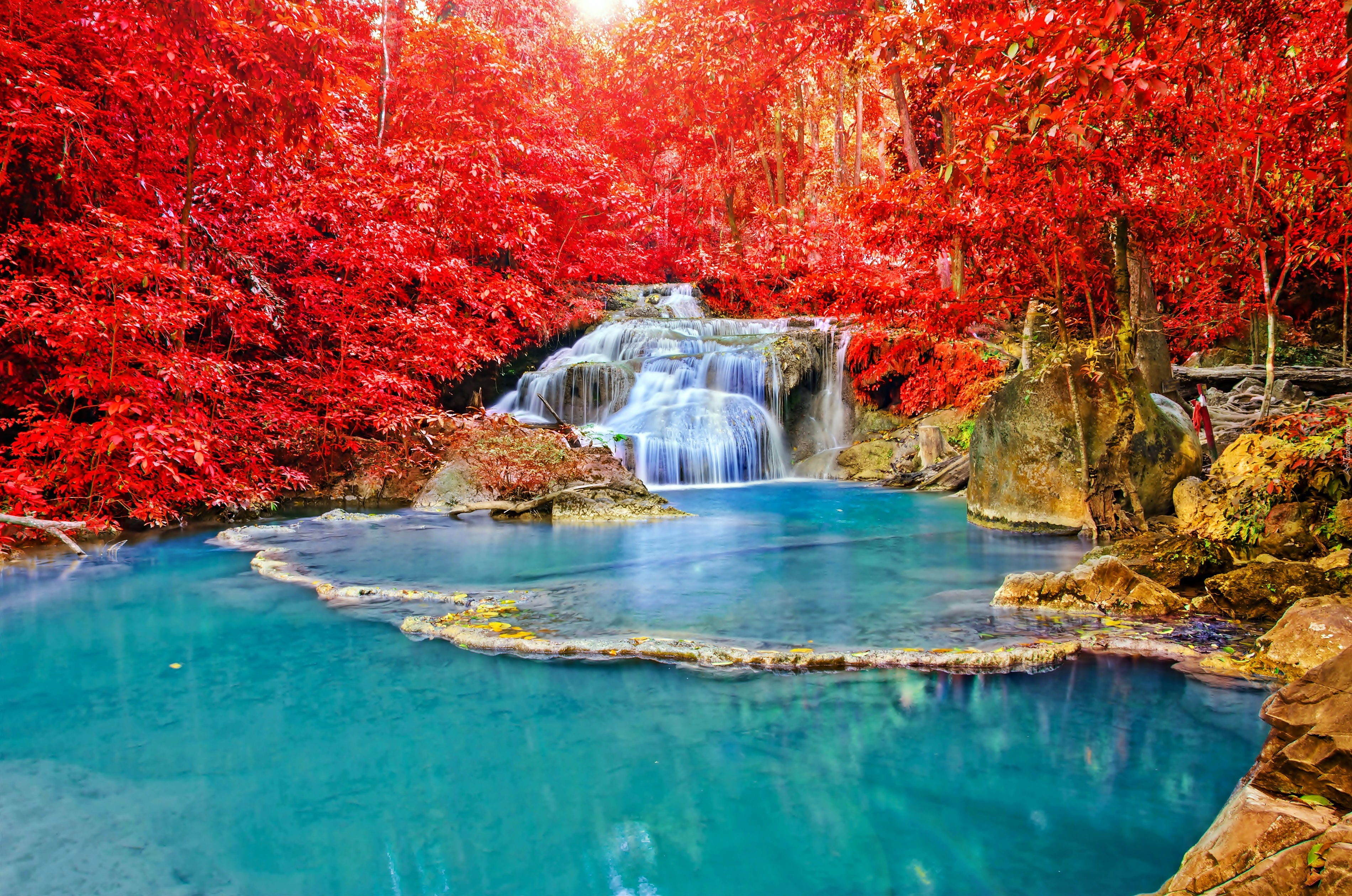 Edytor tapety: Jesień, Las, Wodospad, Skały