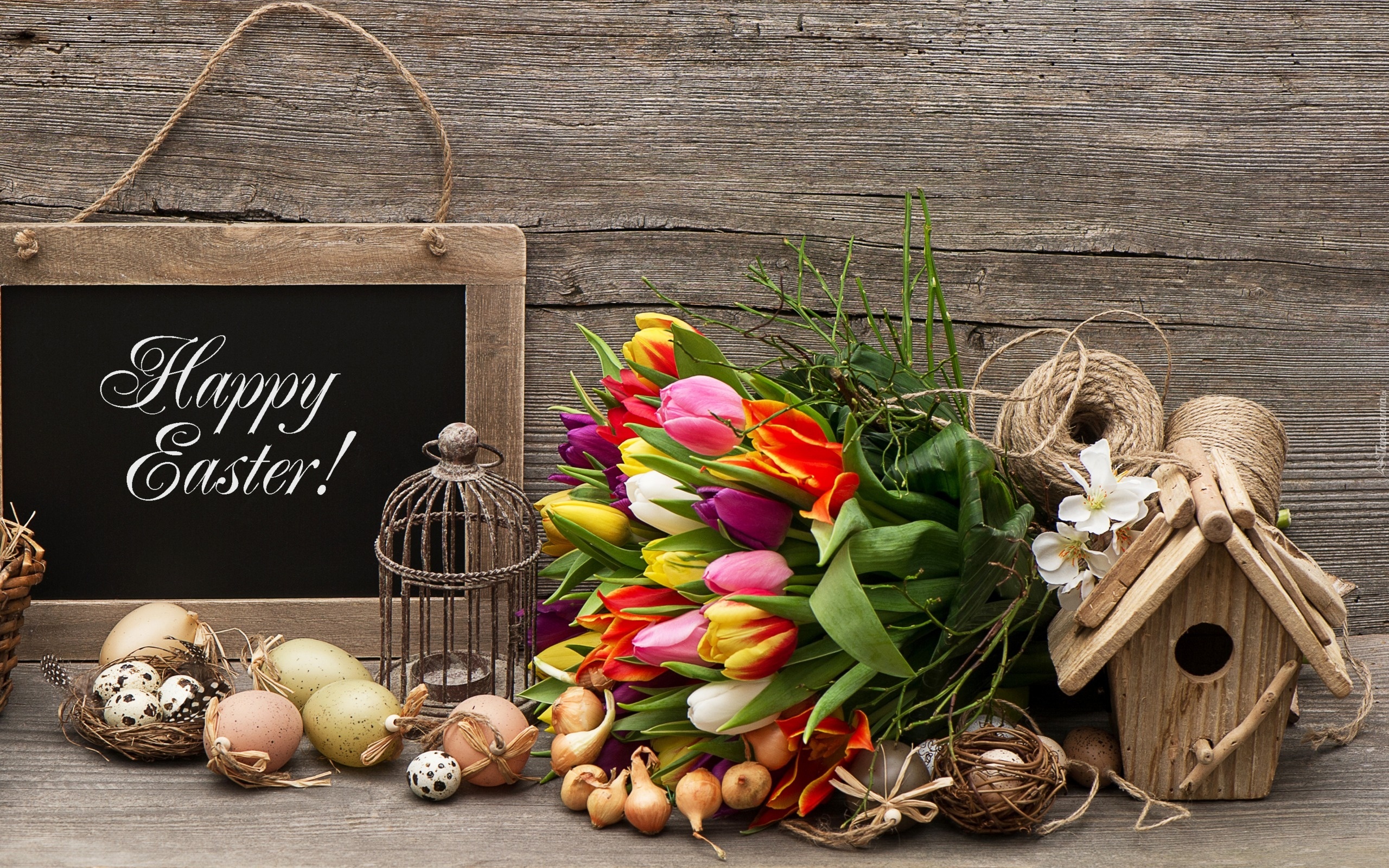 Edytor tapety: Wielkanoc, Tulipany, Kwiaty, Jajka