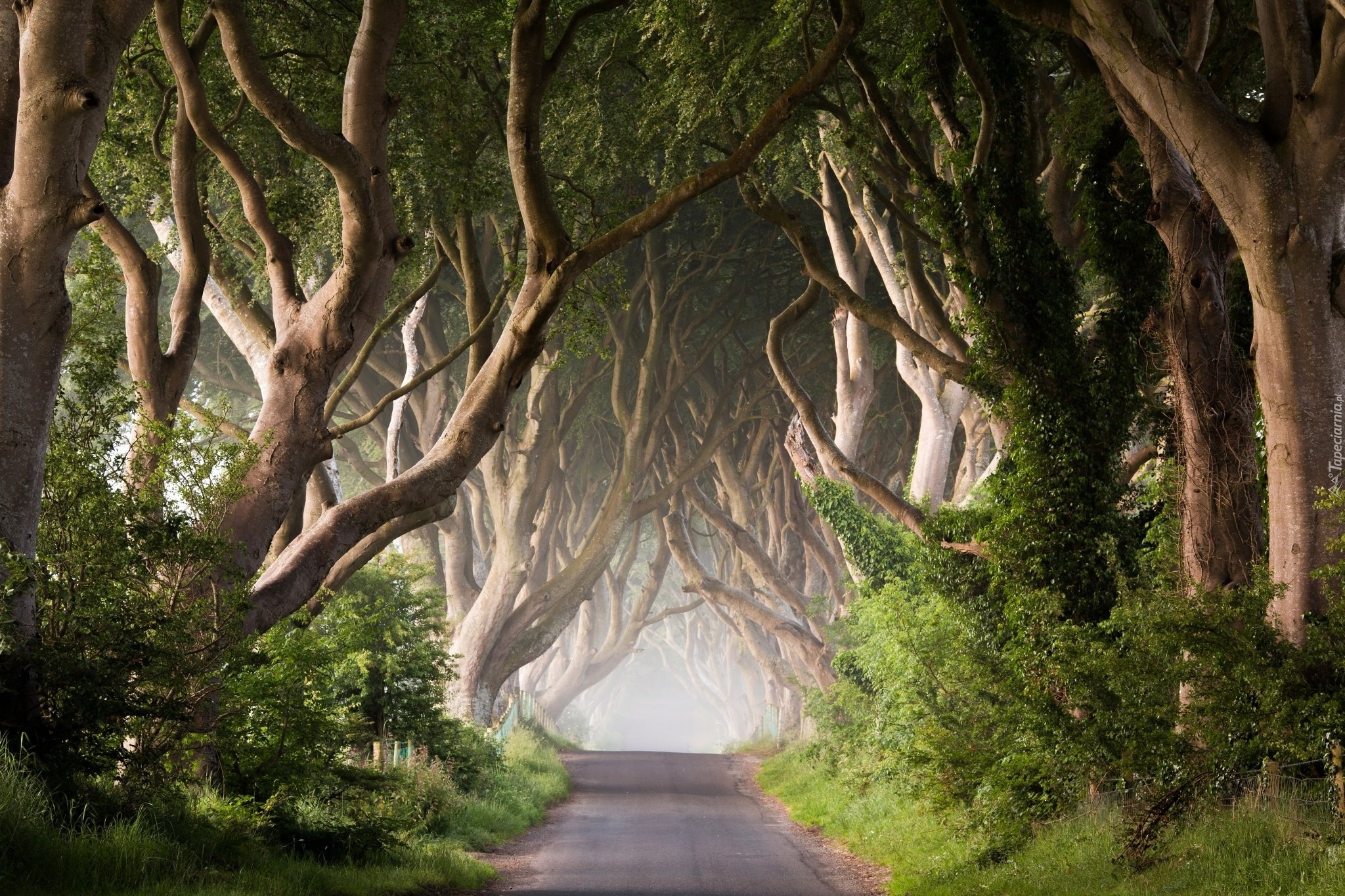 Edytor tapety: Drzewa, Droga, Mgła