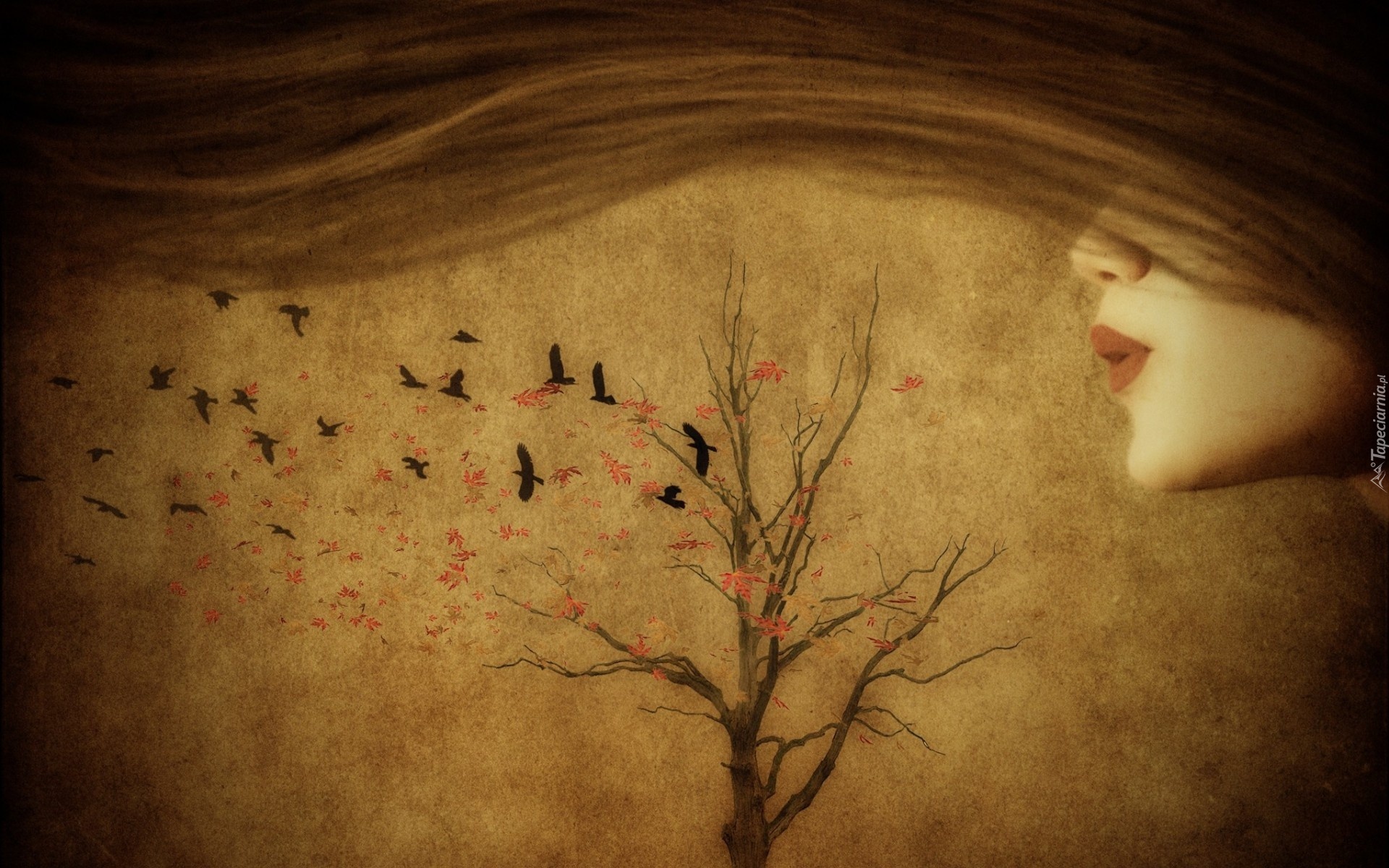 Edytor tapety: Liście, Drzewo, Kobieta, Włosy