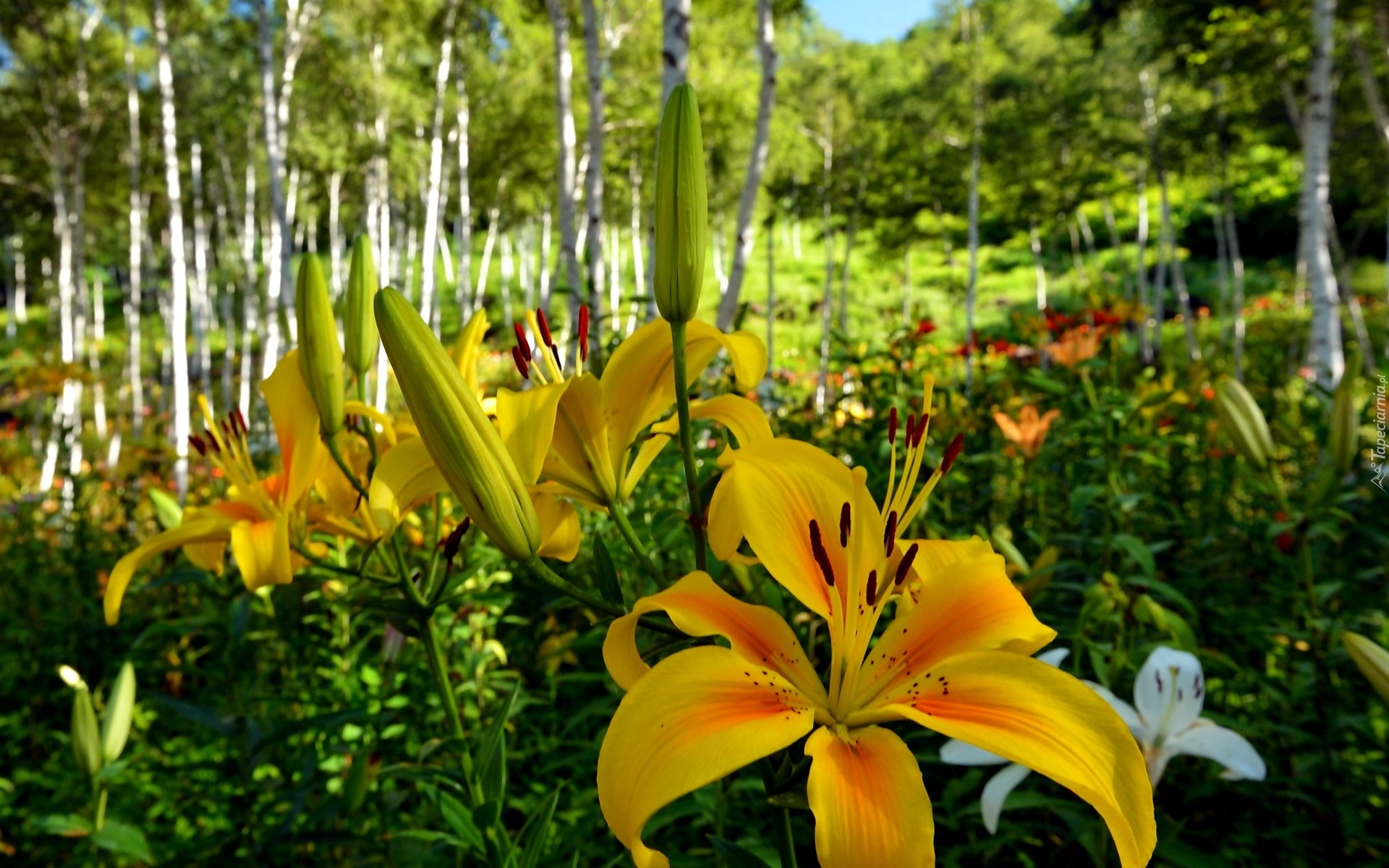 Edytor tapety: Żółte Lilie, Las, Zagajnik, Lato