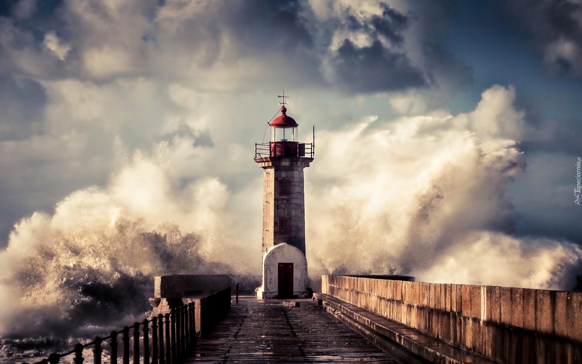 Edytor tapety: Latarnia, Morska, Molo, Fale