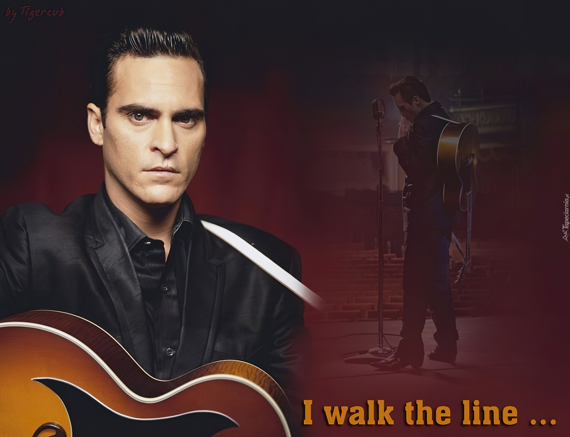 Edytor tapety: Joaquin Phoenix,czarny strój, gitara