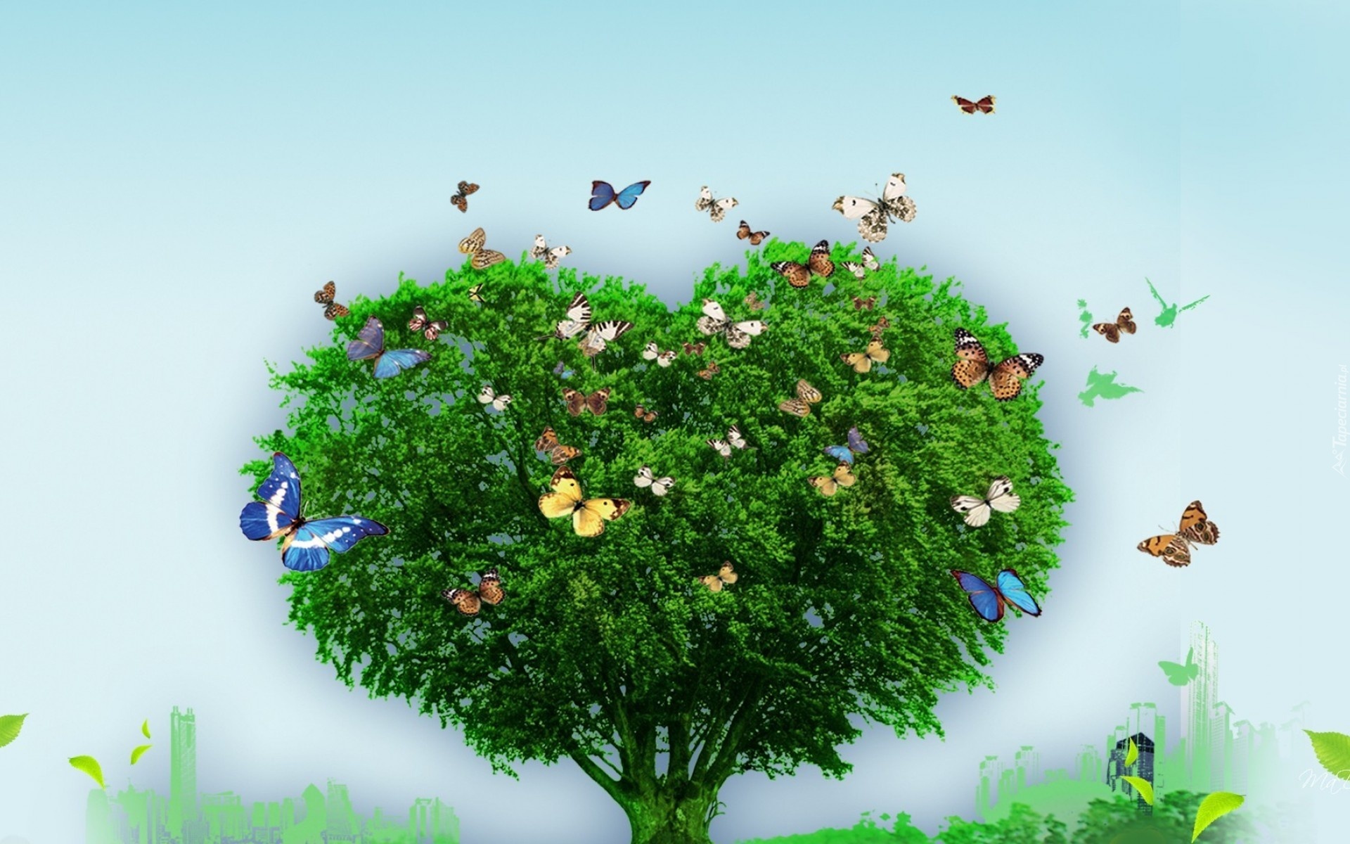 Edytor tapety: Drzewo, Serce, Motyle, Miłosne