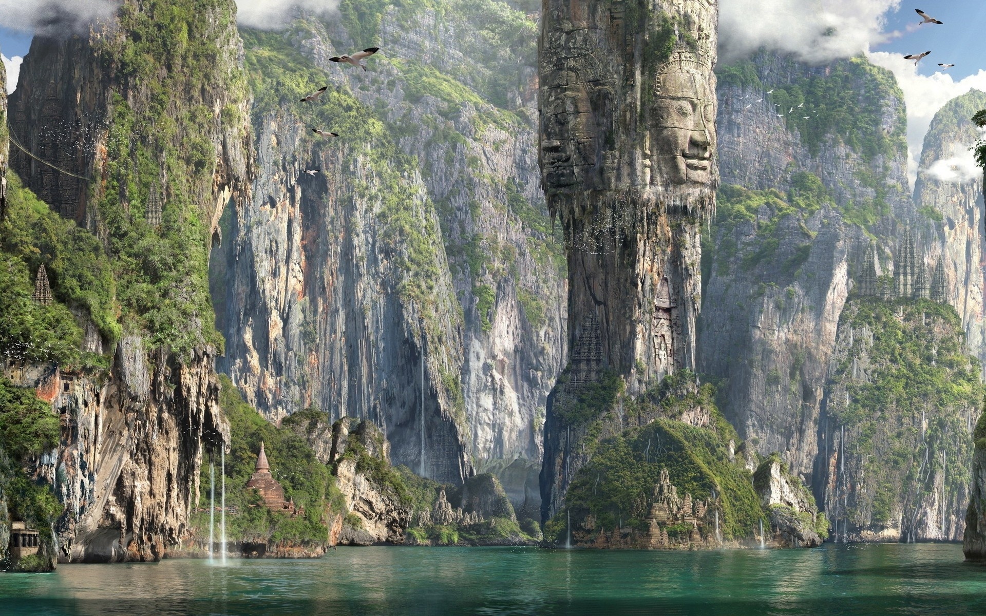 Edytor tapety: Morze, Skały, Posągi