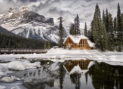 Edytor tapety: Góry, Las, Jezioro, Domek, Zima
