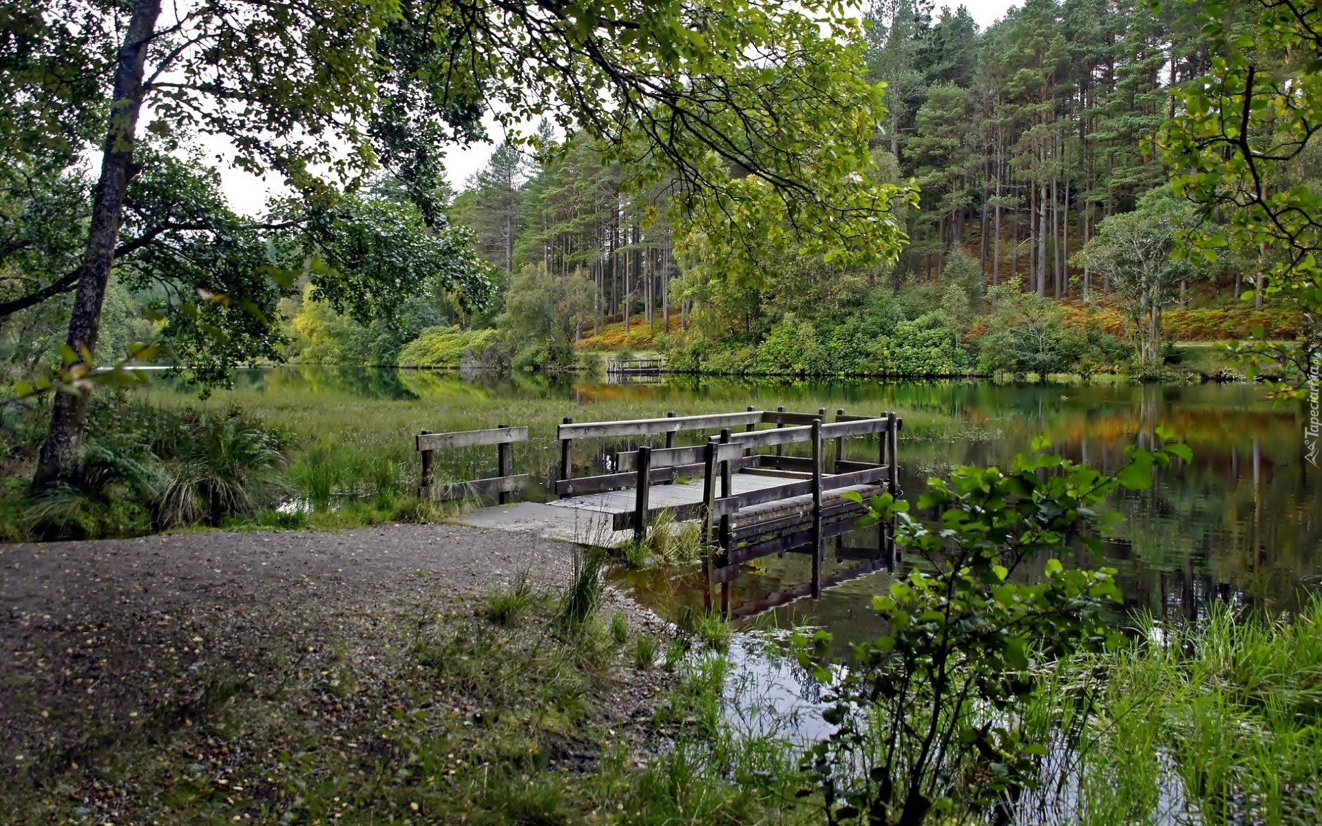 Edytor tapety: Las, Rzeka, Pomost