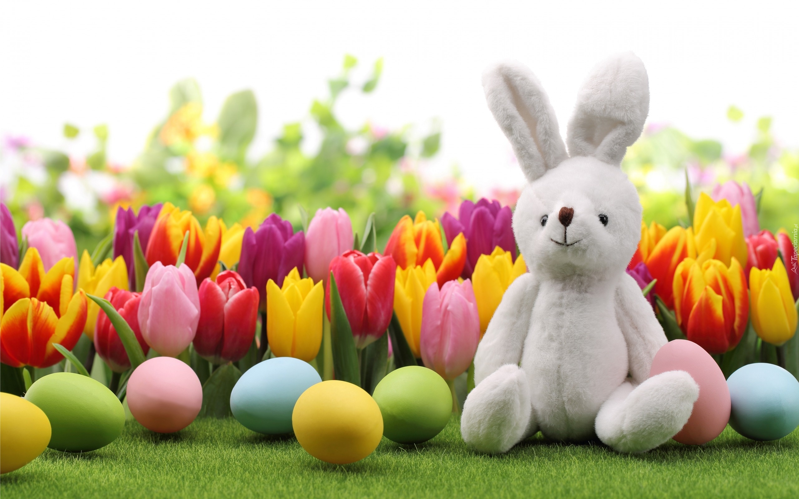 Edytor tapety: Wielkanoc, Jajka, Pisanki, Tulipany, Pluszowy Króliczek