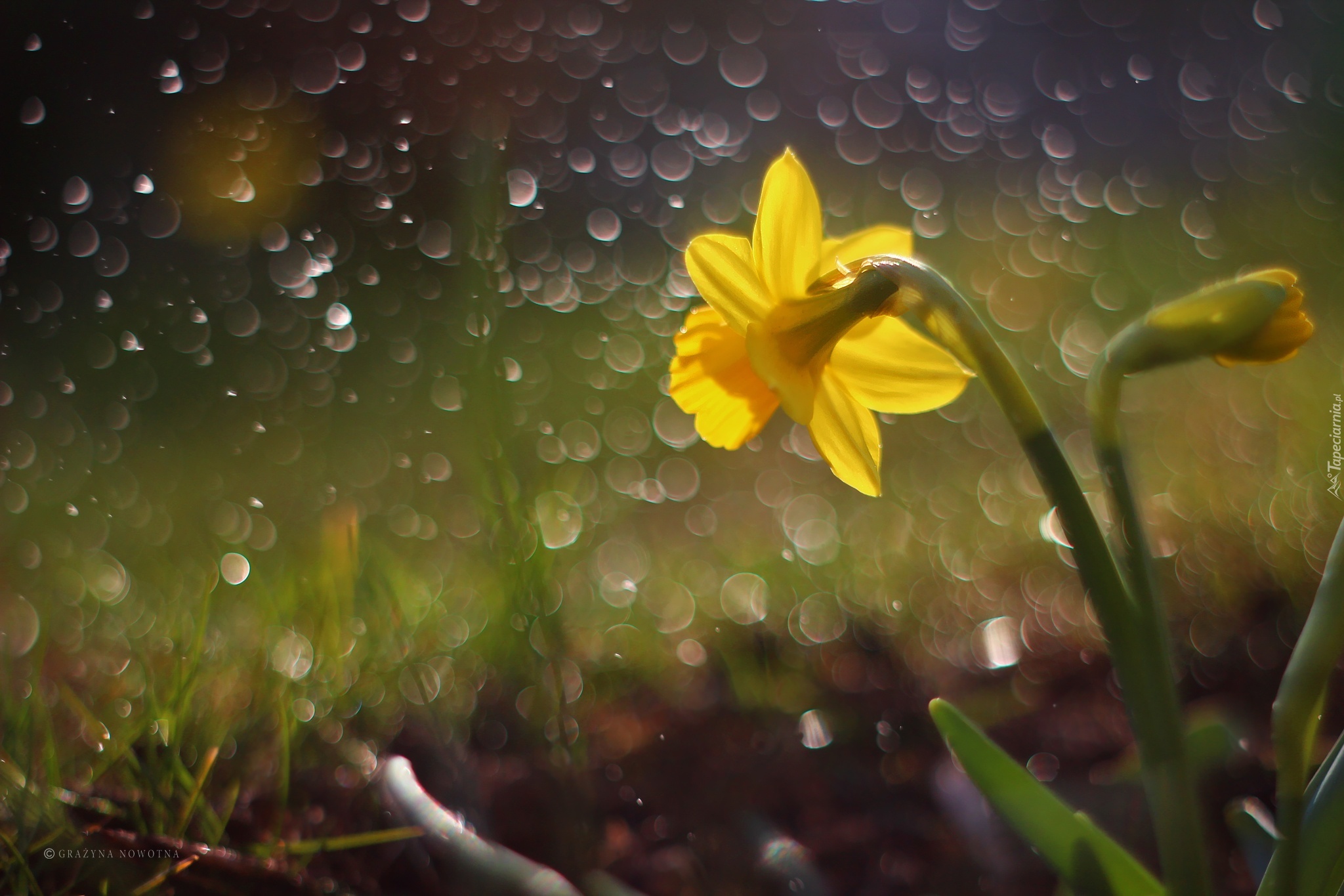 Edytor tapety: Żonkil, Żółty, Kwiat, Bokeh