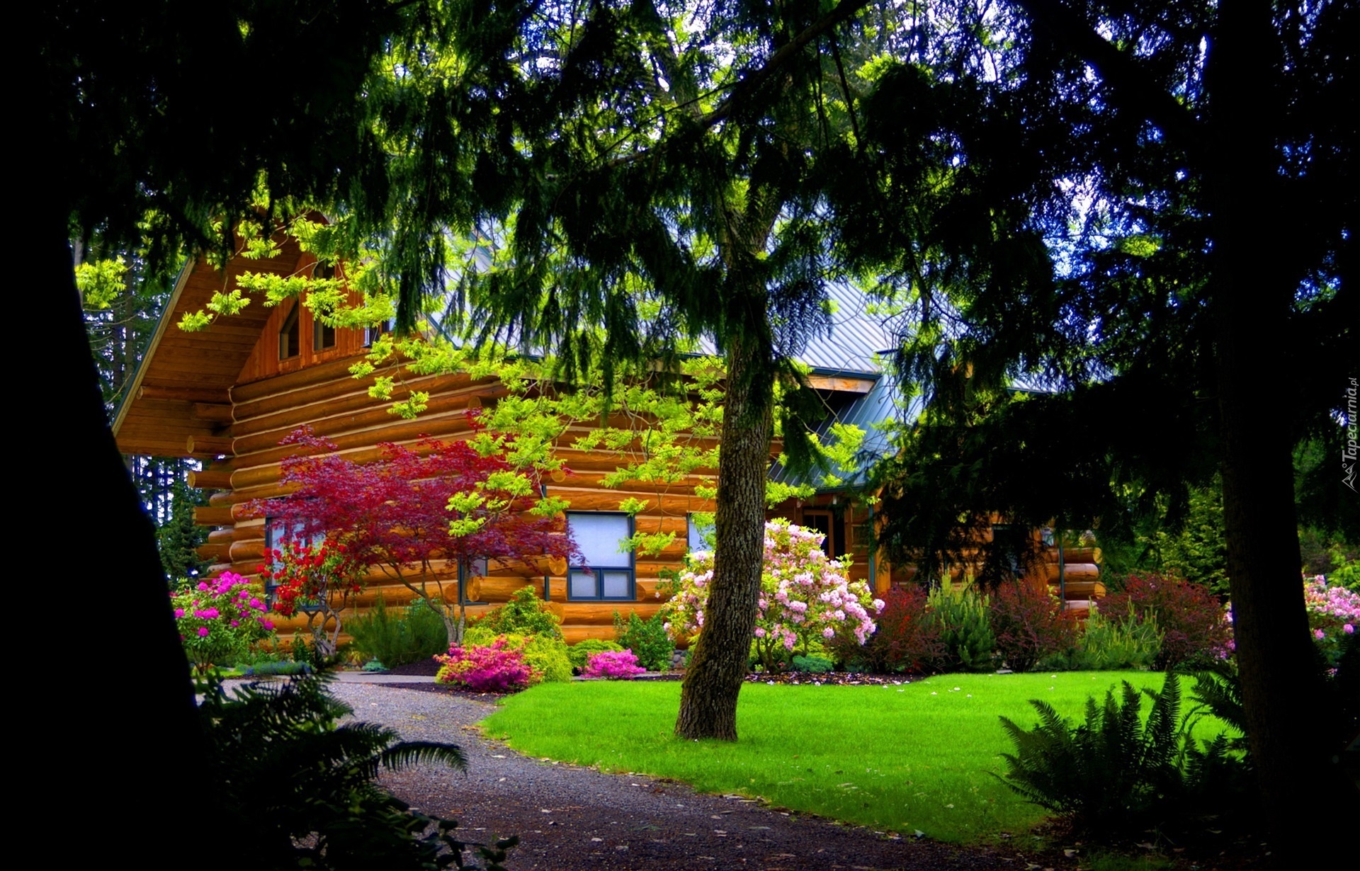 Edytor tapety: Dom, Drzewa, Krzewy, Wiosna