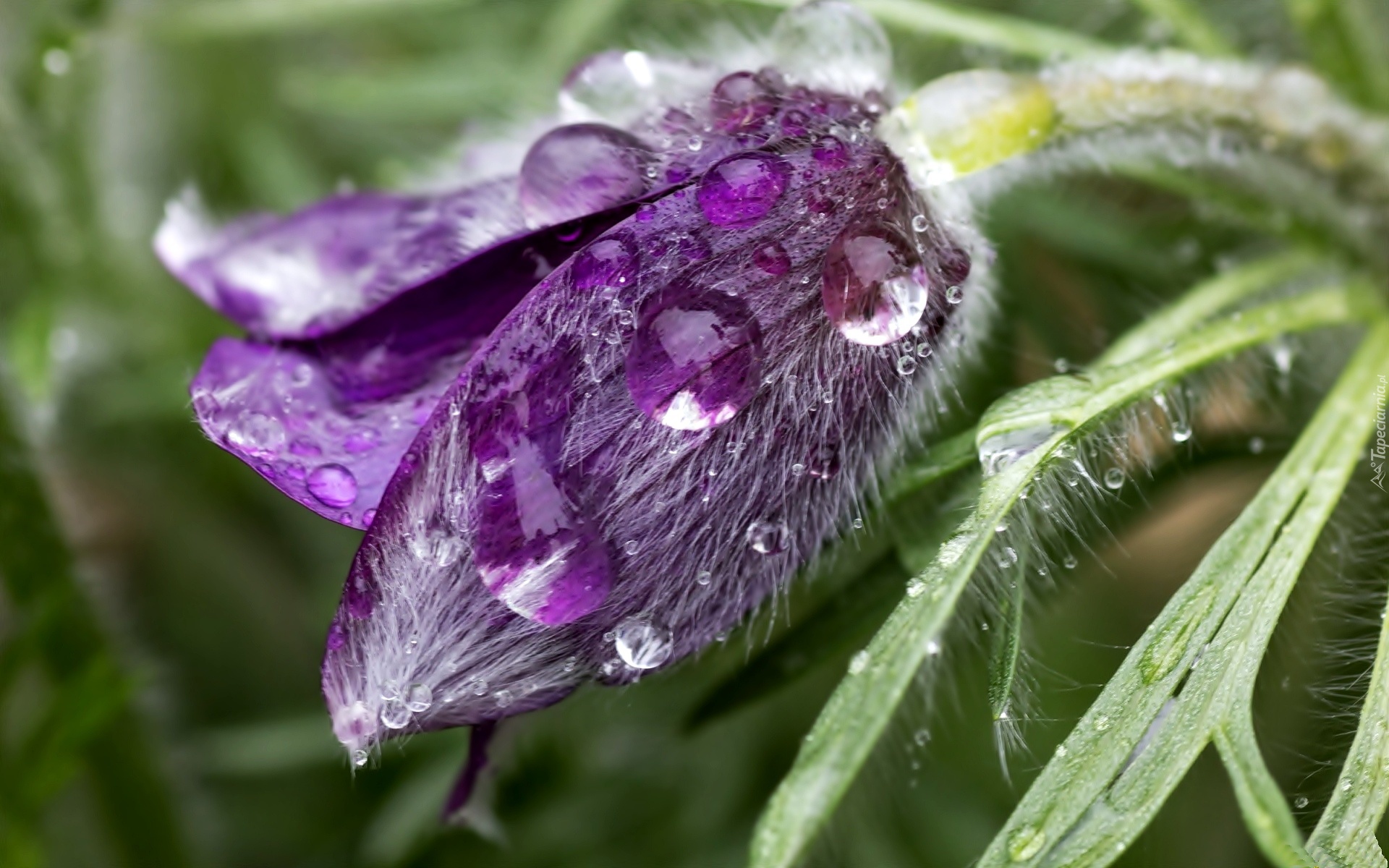 Edytor tapety: Fioletowa, Sasanka, Krople