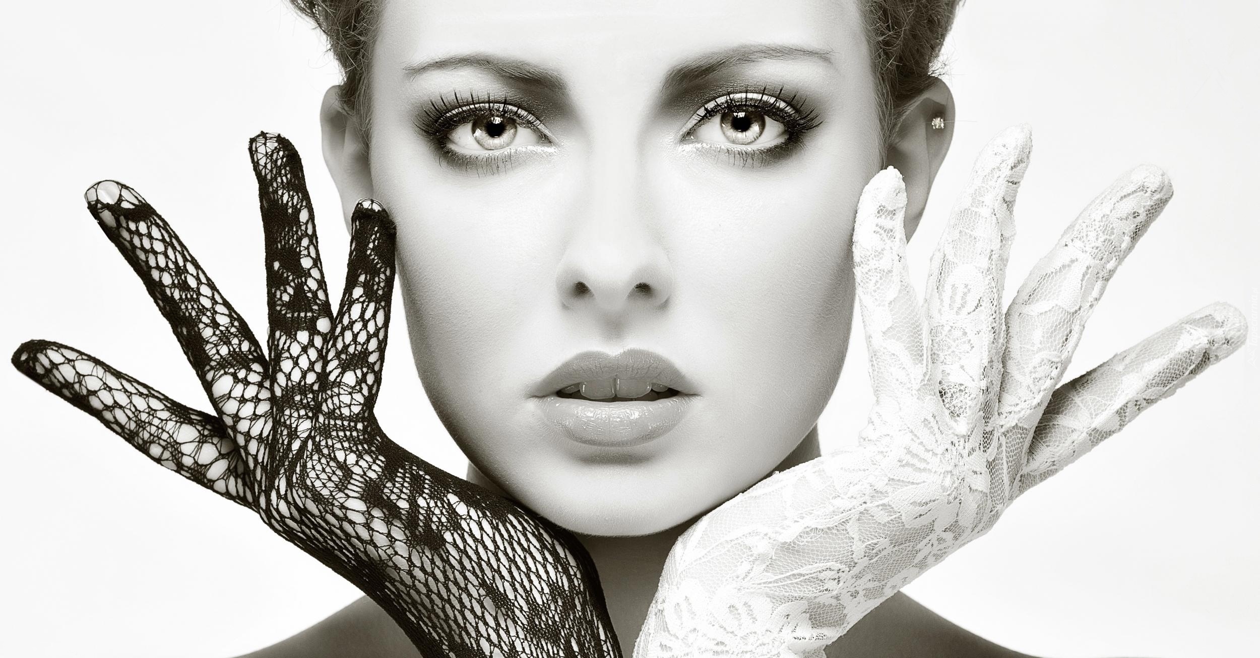 Edytor tapety: Kobieta, Makijaż, Twarz, Rękawiczki, Biało-Czarne