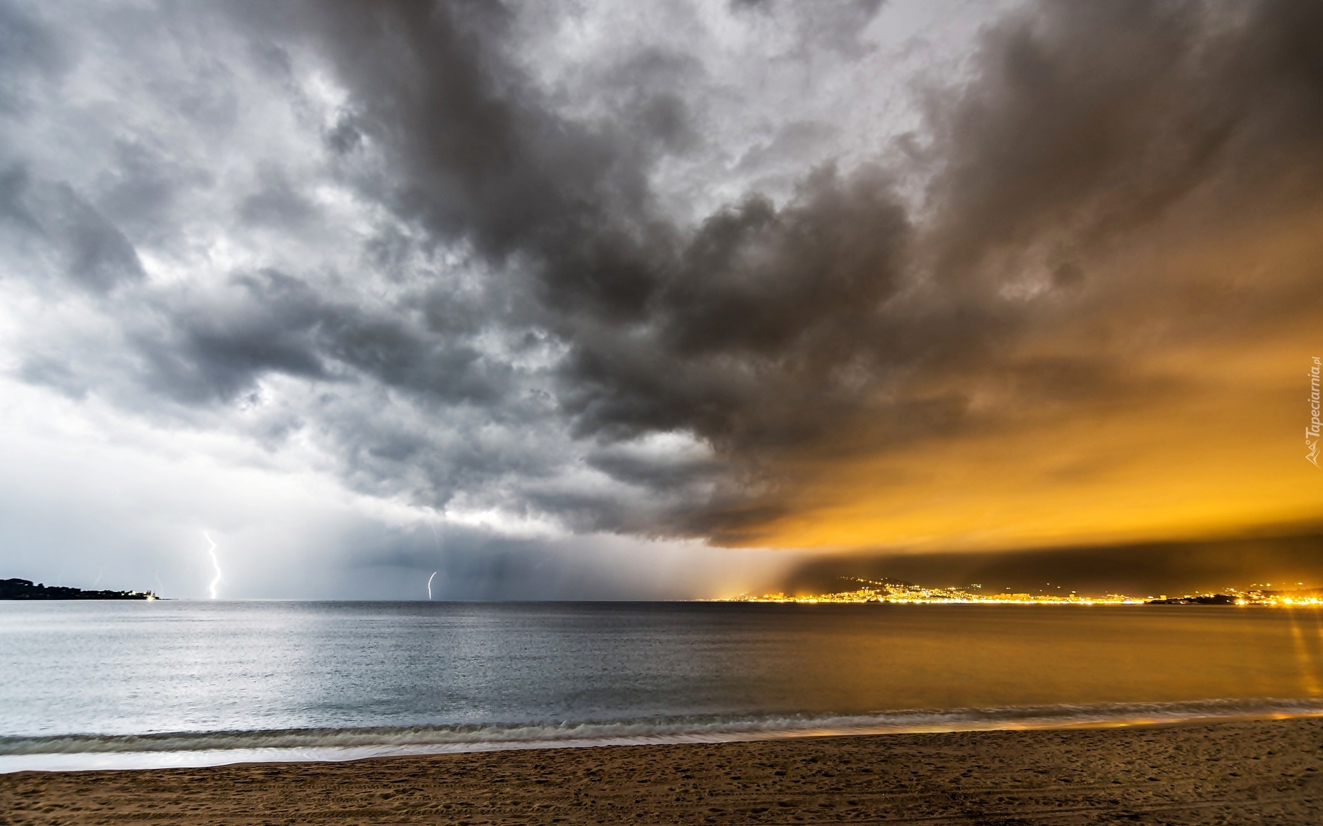 Edytor tapety: Zachód Słońca, Morze, Pioruny, Chmury, Burza