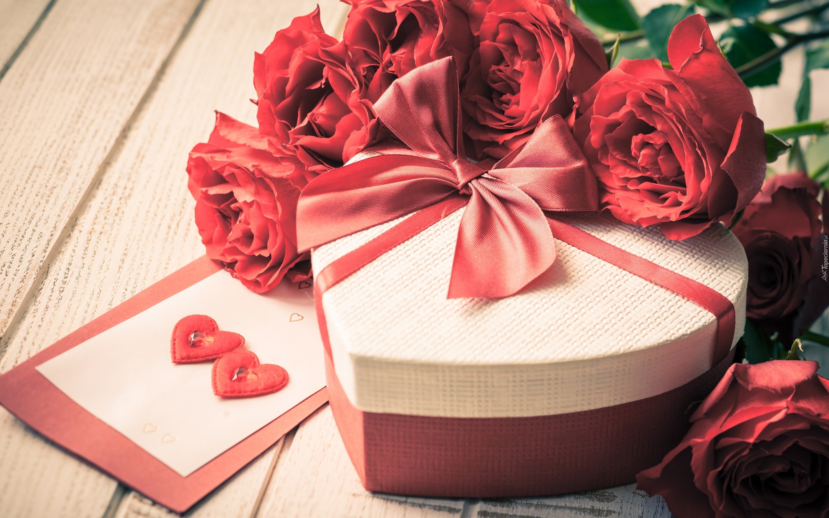 Edytor tapety: Czerwone, Róże, Kwiaty, Prezent, Walentynki, Miłosne