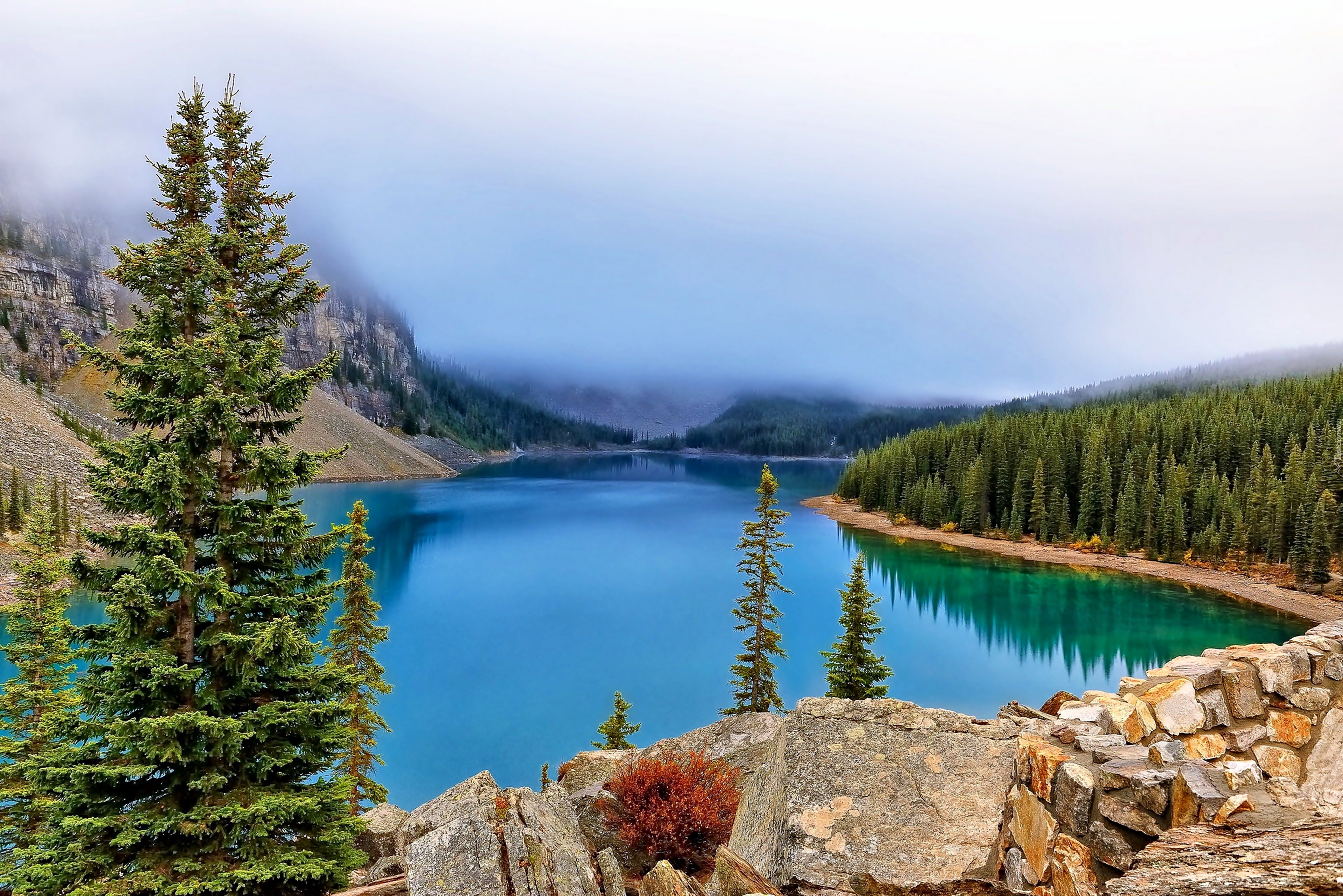Edytor tapety: Jezioro, Las, Skały, Kanada