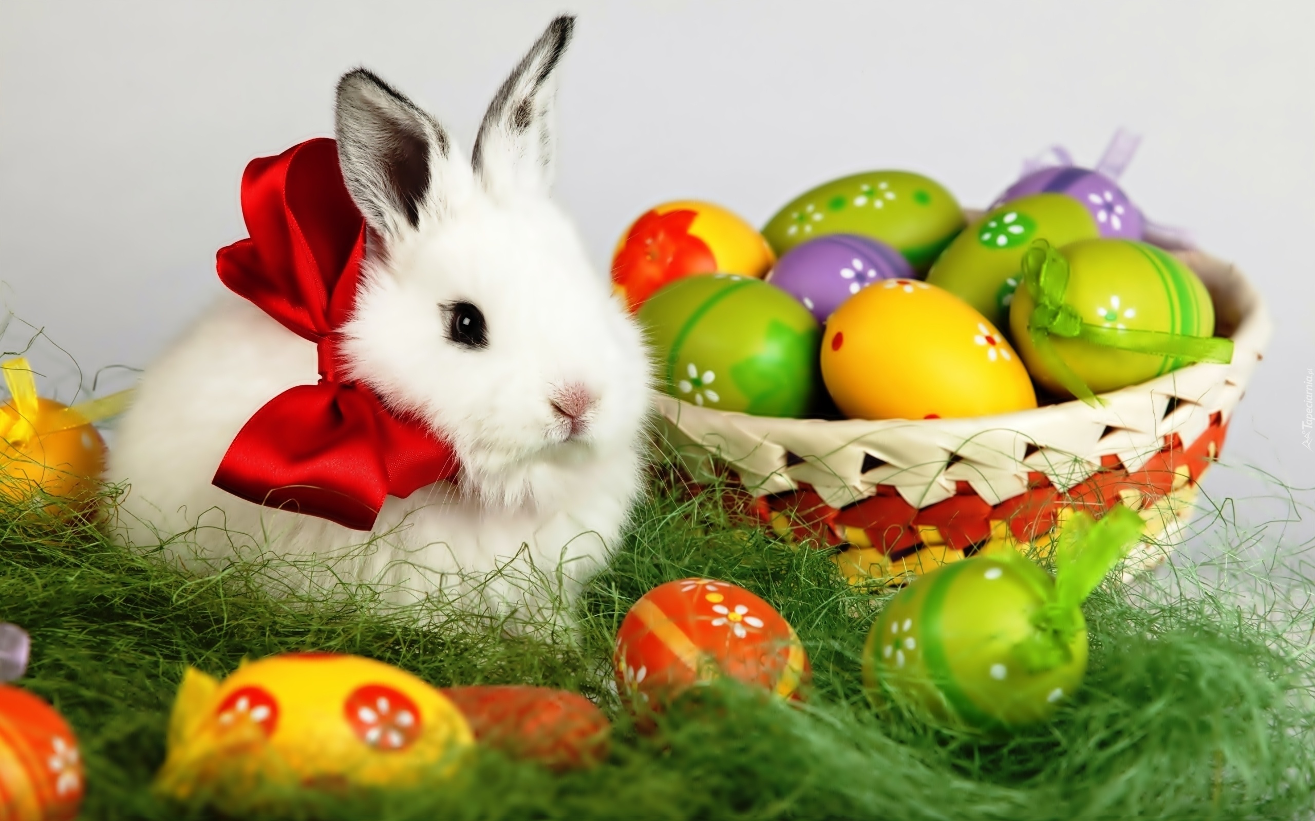 Edytor tapety: Biały, Królik, Jajka, Koszyk