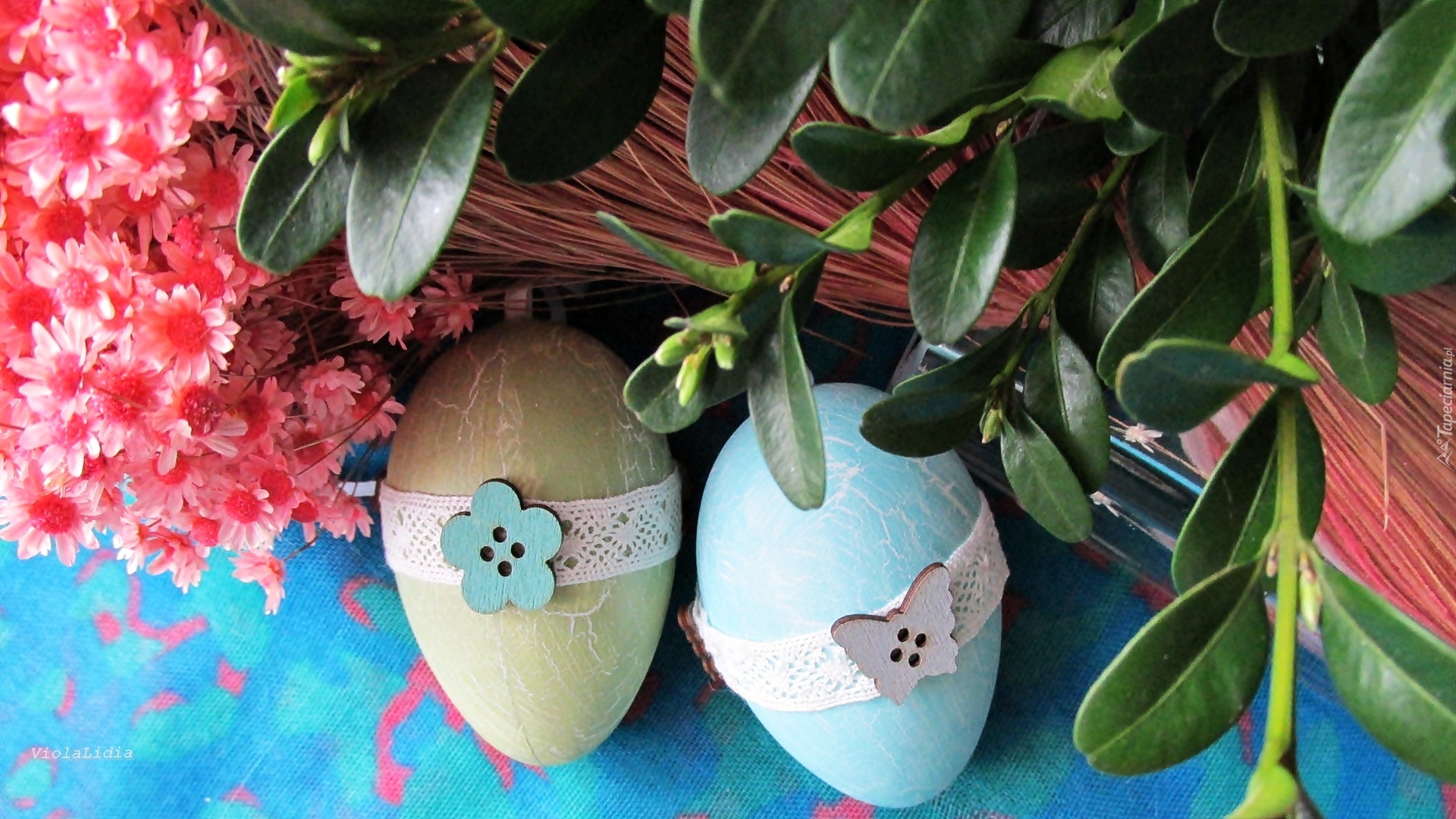 Edytor tapety: Wielkanoc, Pisanki, Roślinka, Bukszpan, Suche, Kwiatki