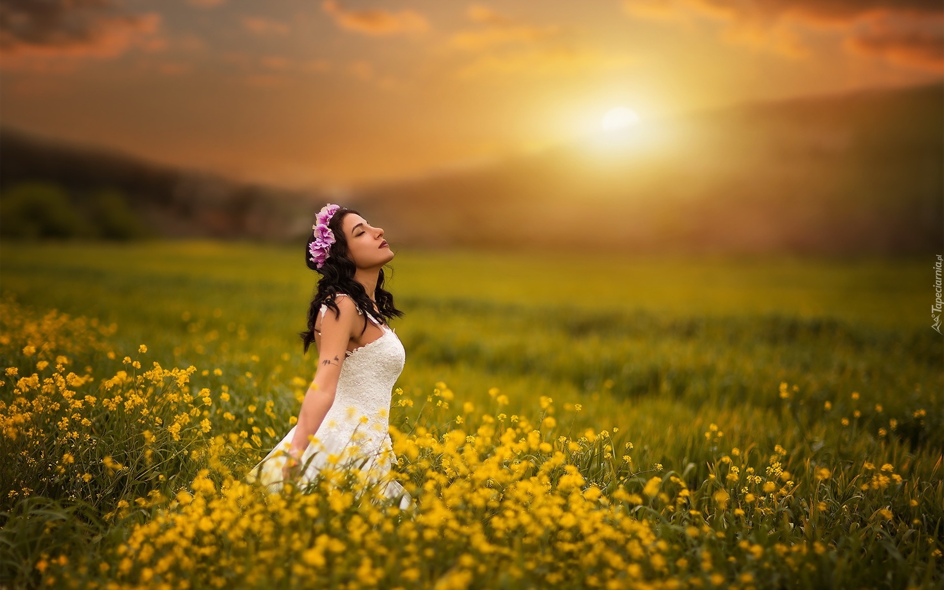 Edytor tapety: Kobieta, Łąka, Kwiaty