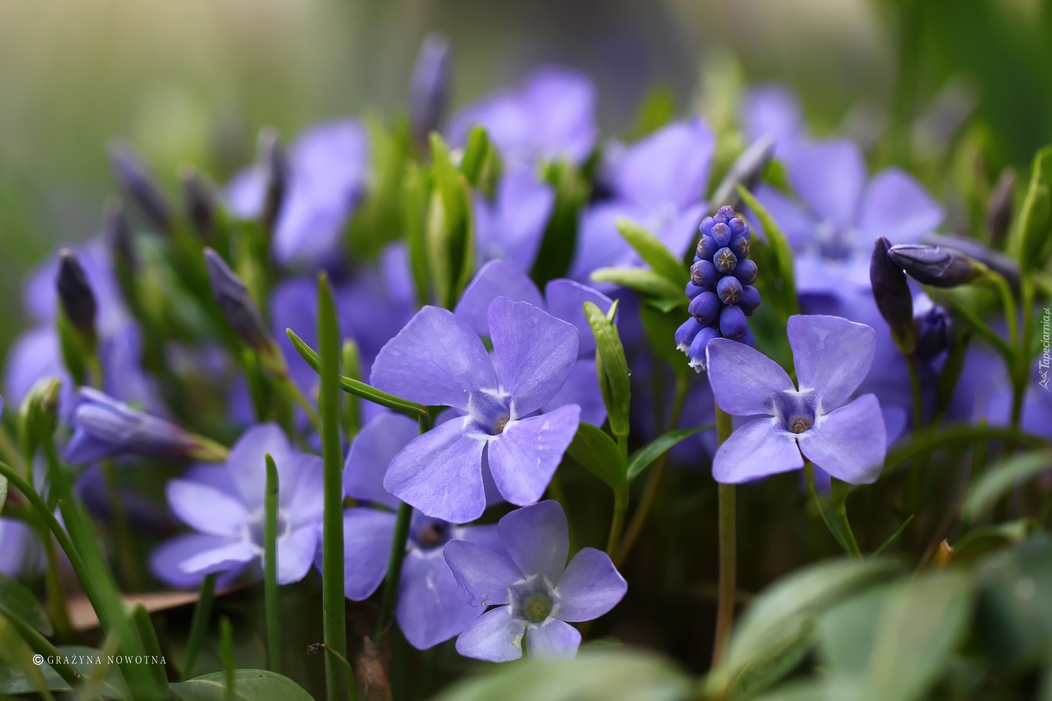 Edytor tapety: Barwinki, Szafirki, Niebieskie, Kwiaty
