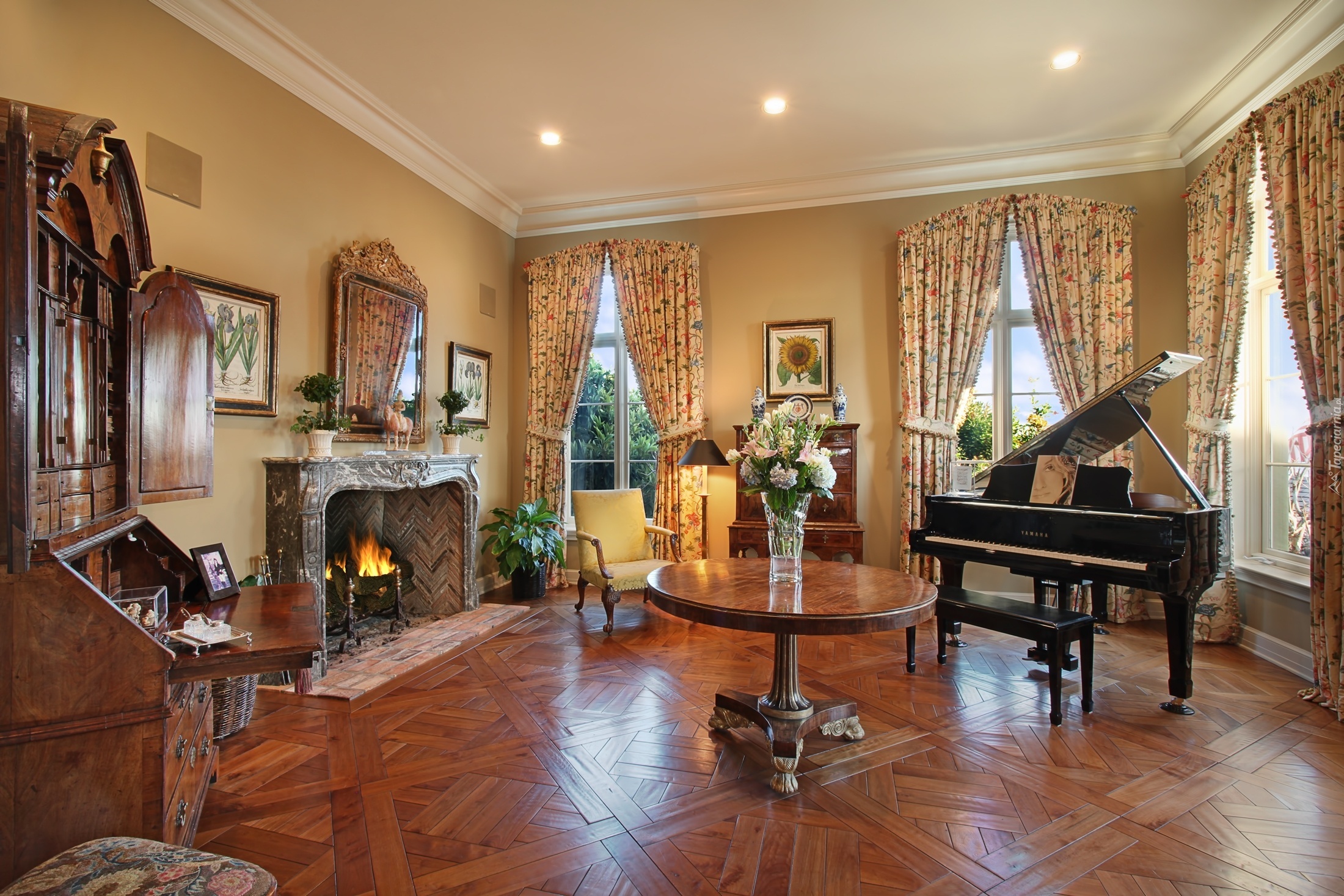 Edytor tapety: Pokój, Kominek, Fortepian