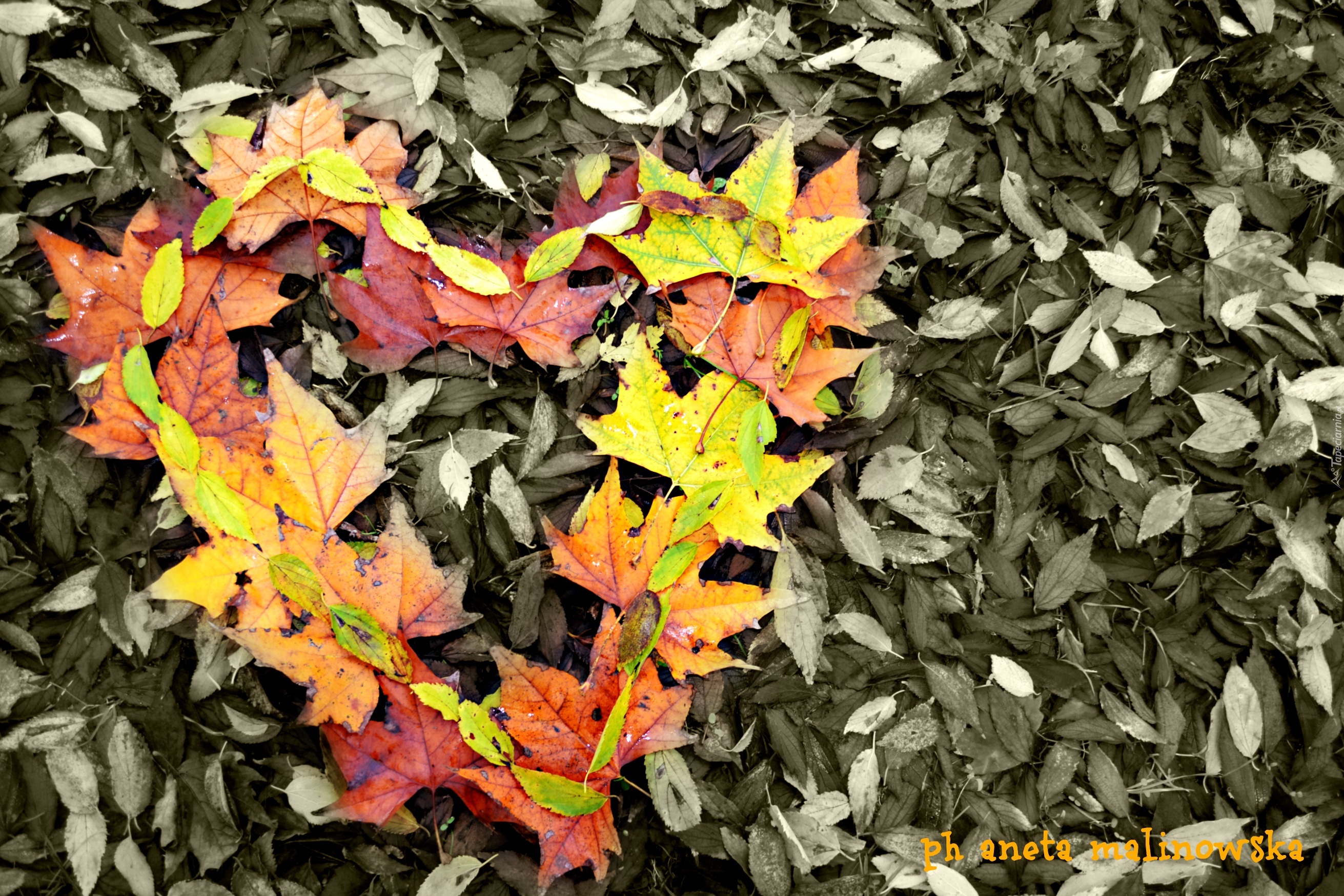 Edytor tapety: Serce, Liście, Jesień
