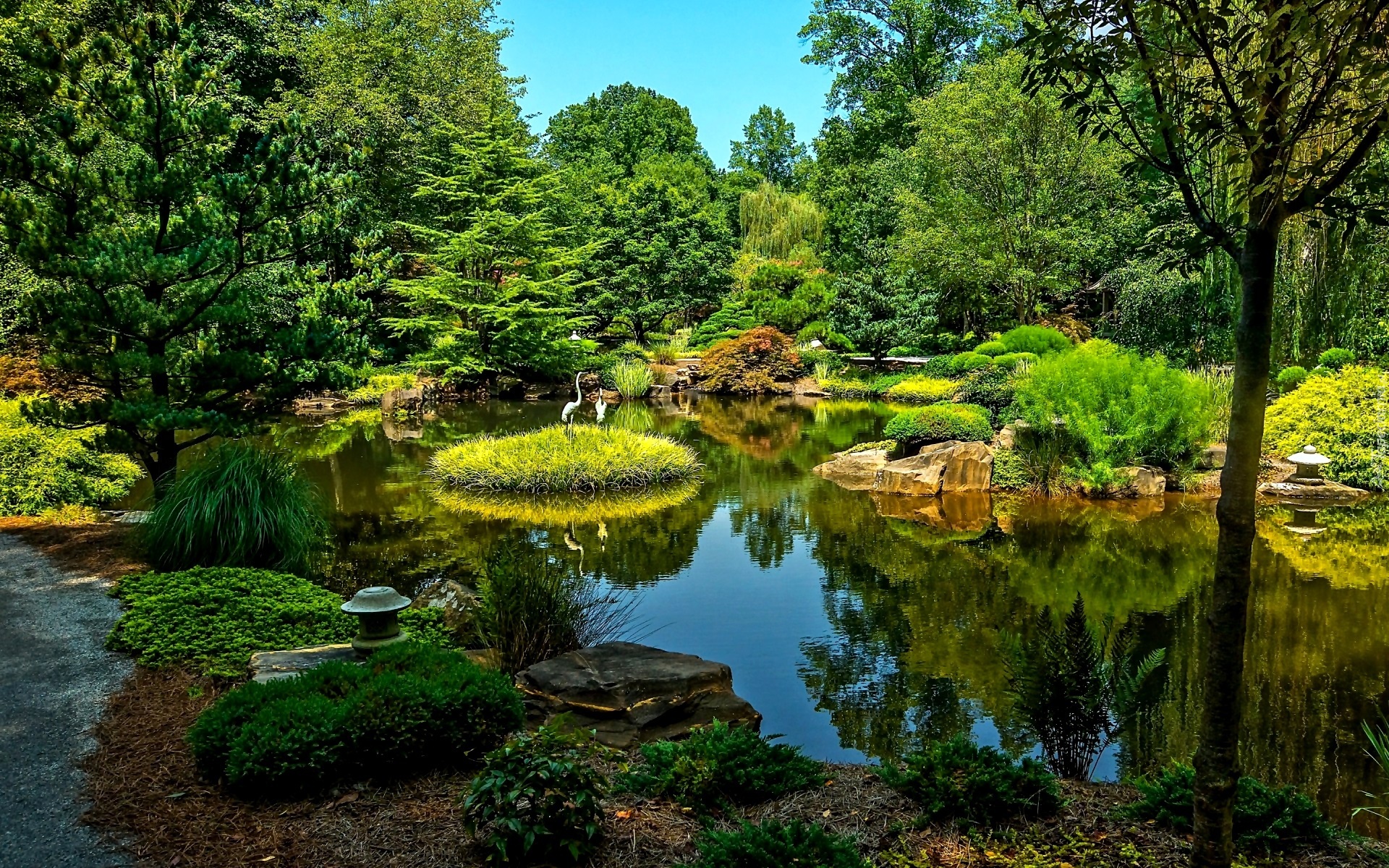 Edytor tapety: Park, Staw, Zieleń, Żurawie