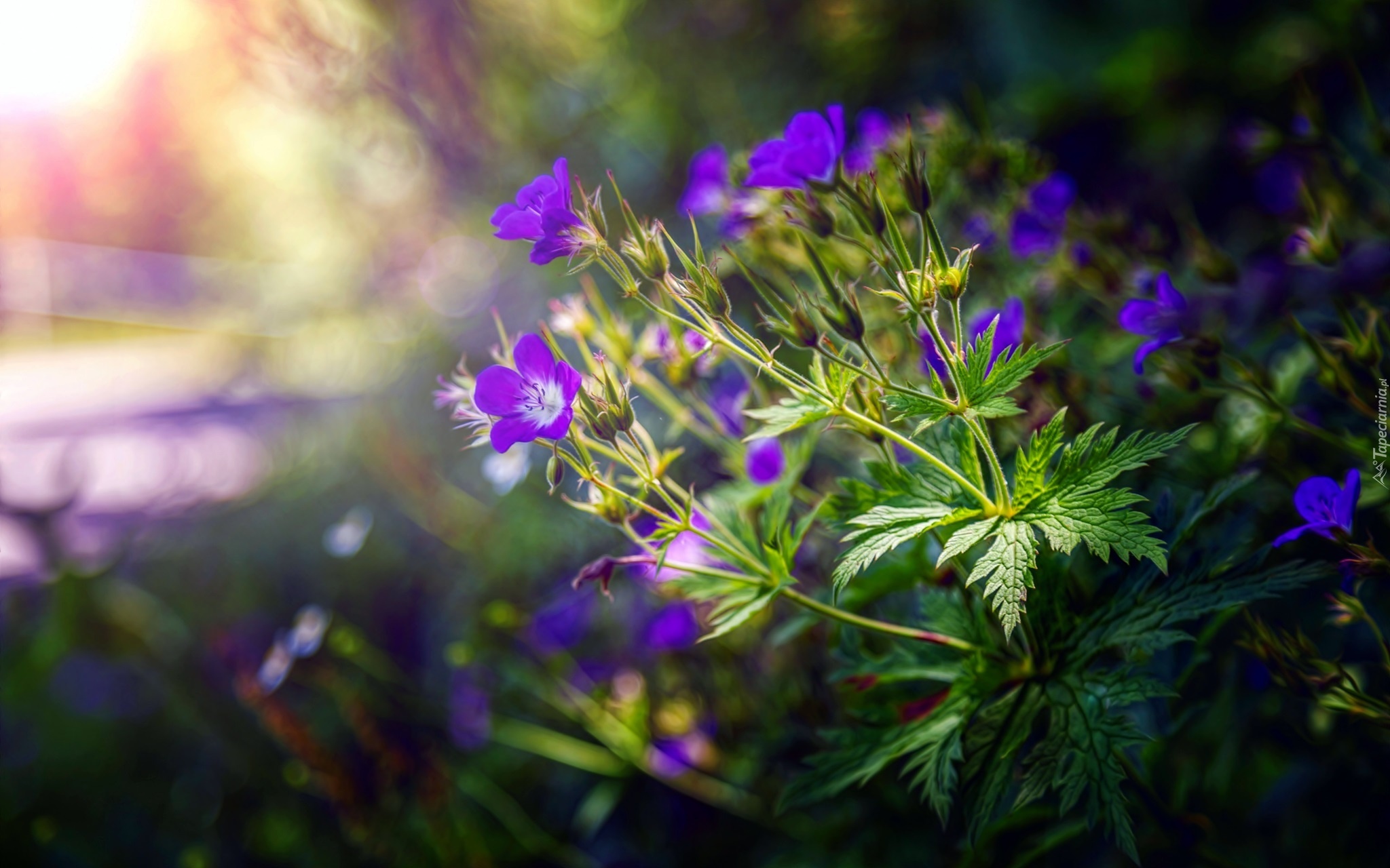 Edytor tapety: Fioletowe, Kwiatki, Liście, Światło