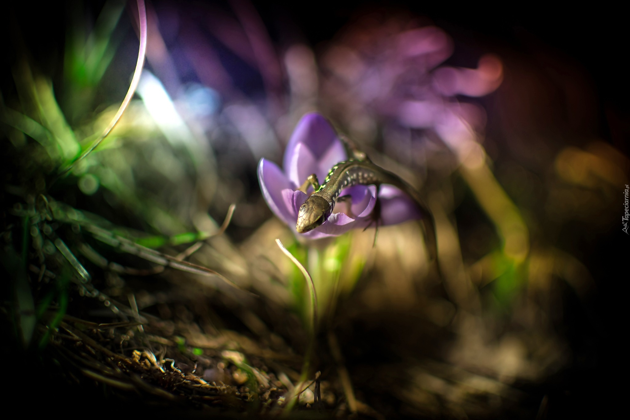 Edytor tapety: Kwiat, Krokus, Światło, Jaszczurka