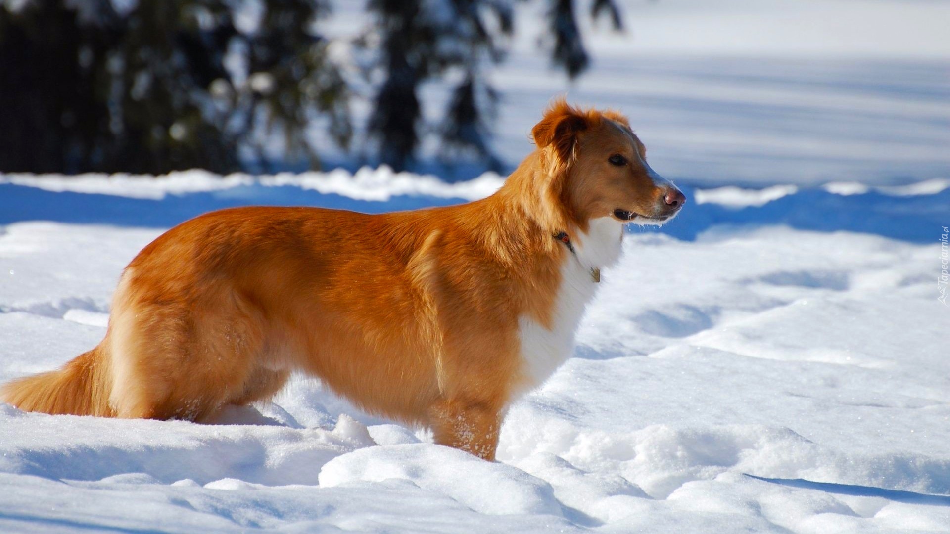 Edytor tapety: Zima, Śnieg, Rudy, Pies