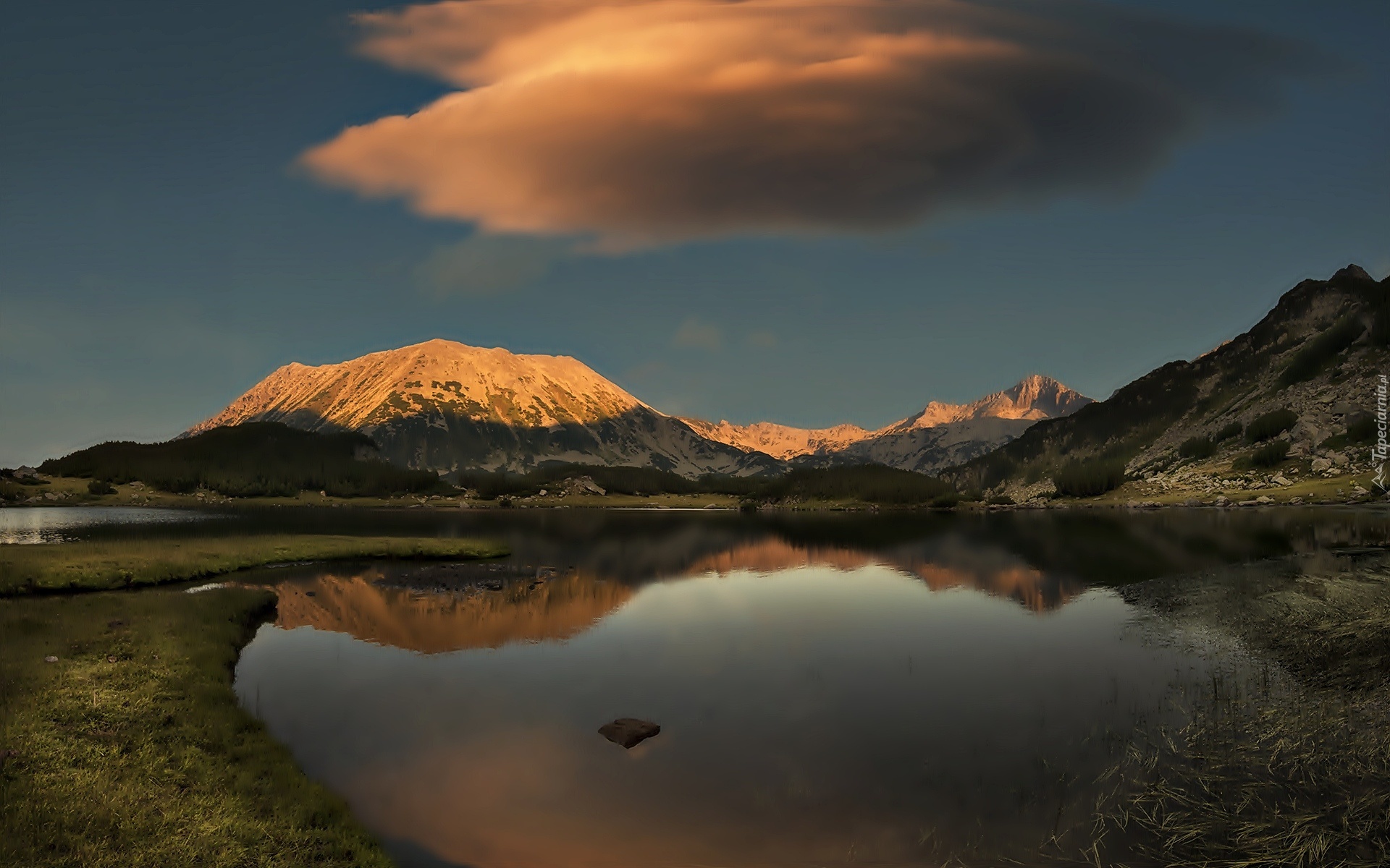 Edytor tapety: Góry, Jezioro, Chmura, Cień, Blask
