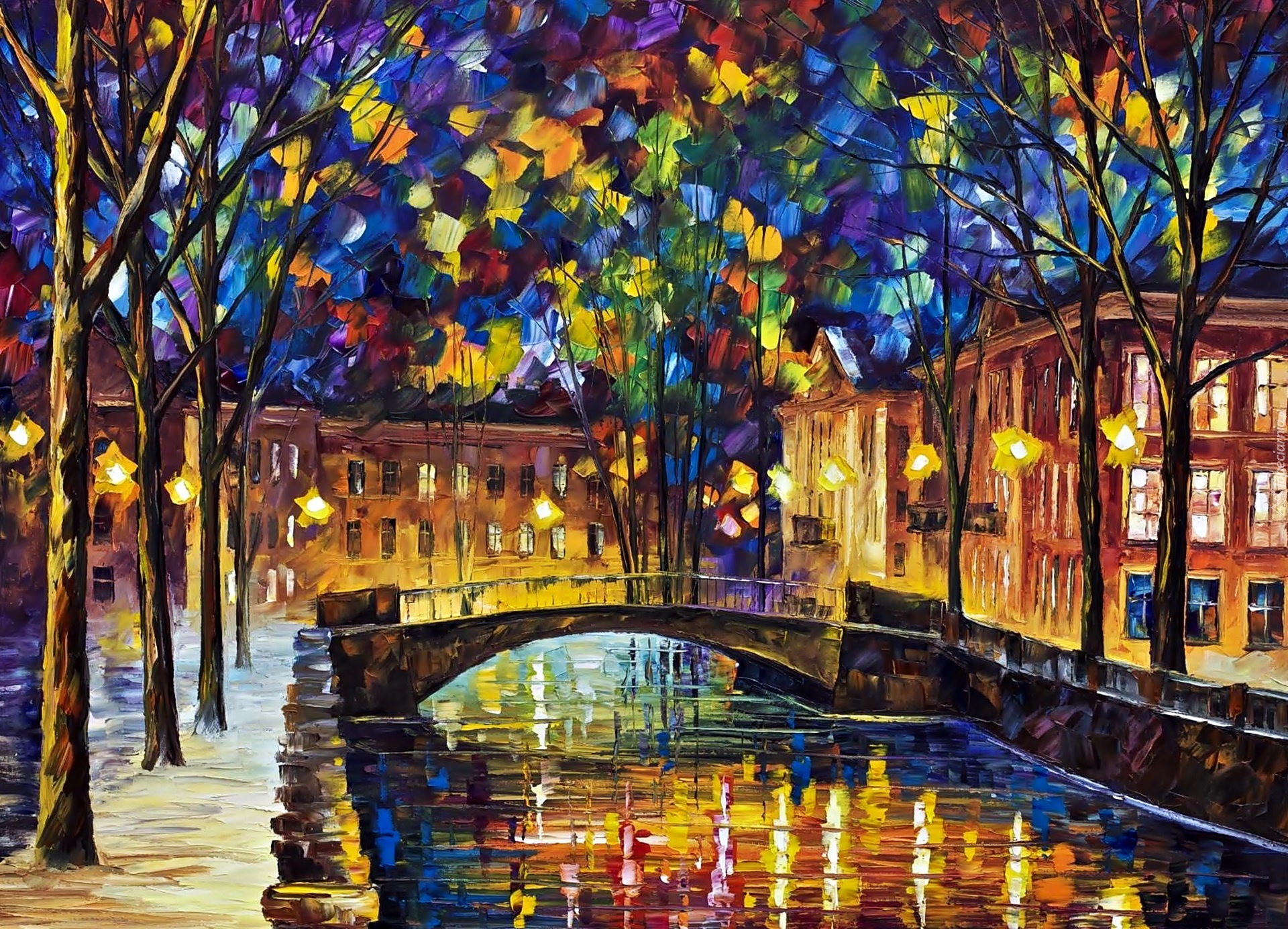 Edytor tapety: Leonid Afremov, Miasto, Nocą
