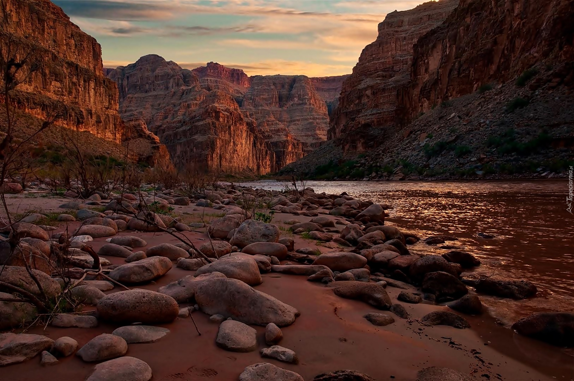 Edytor tapety: Kanion, Rzeka, Kamienie, Światło, Cień