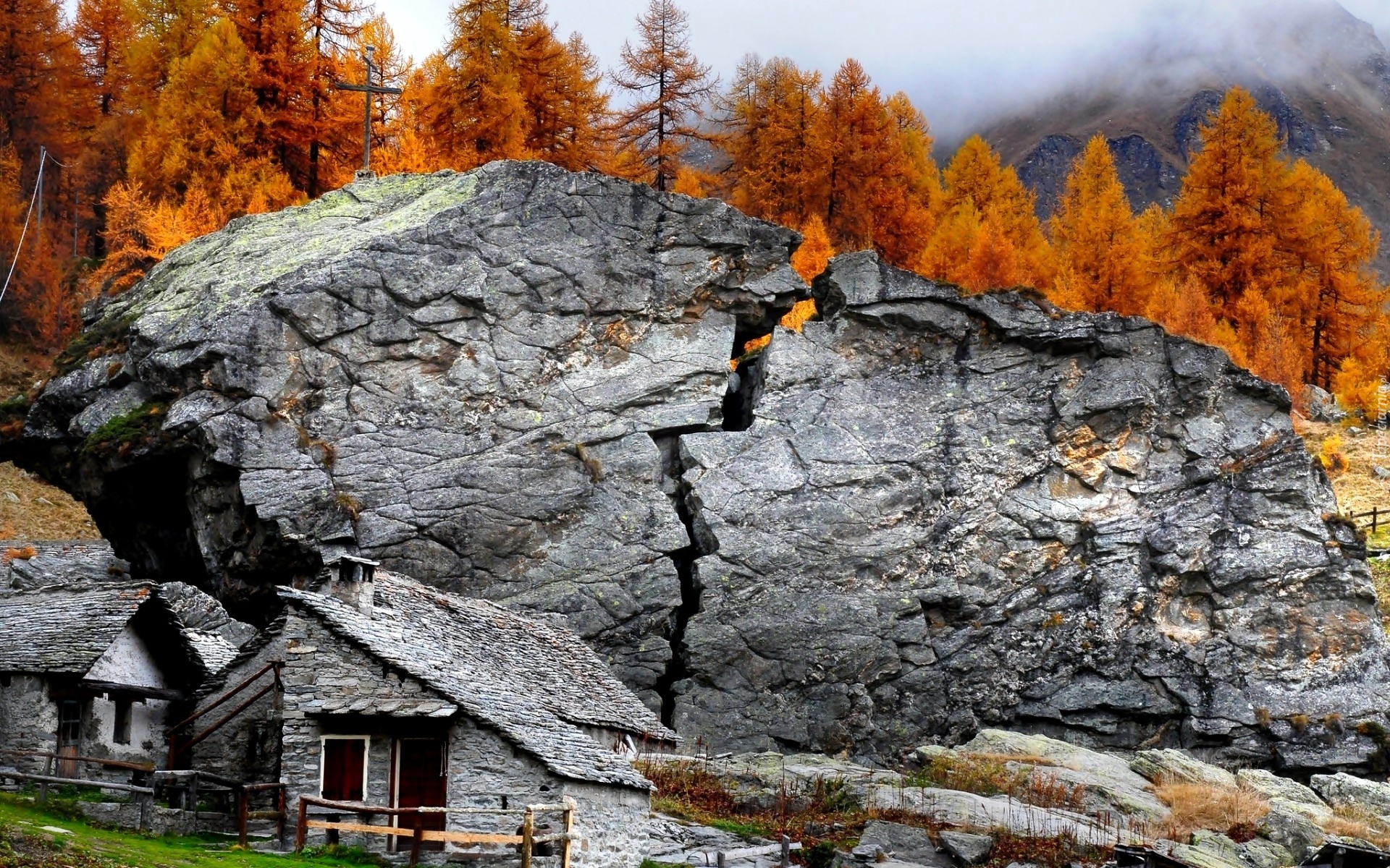 Edytor tapety: Jesień, Skała, Domy