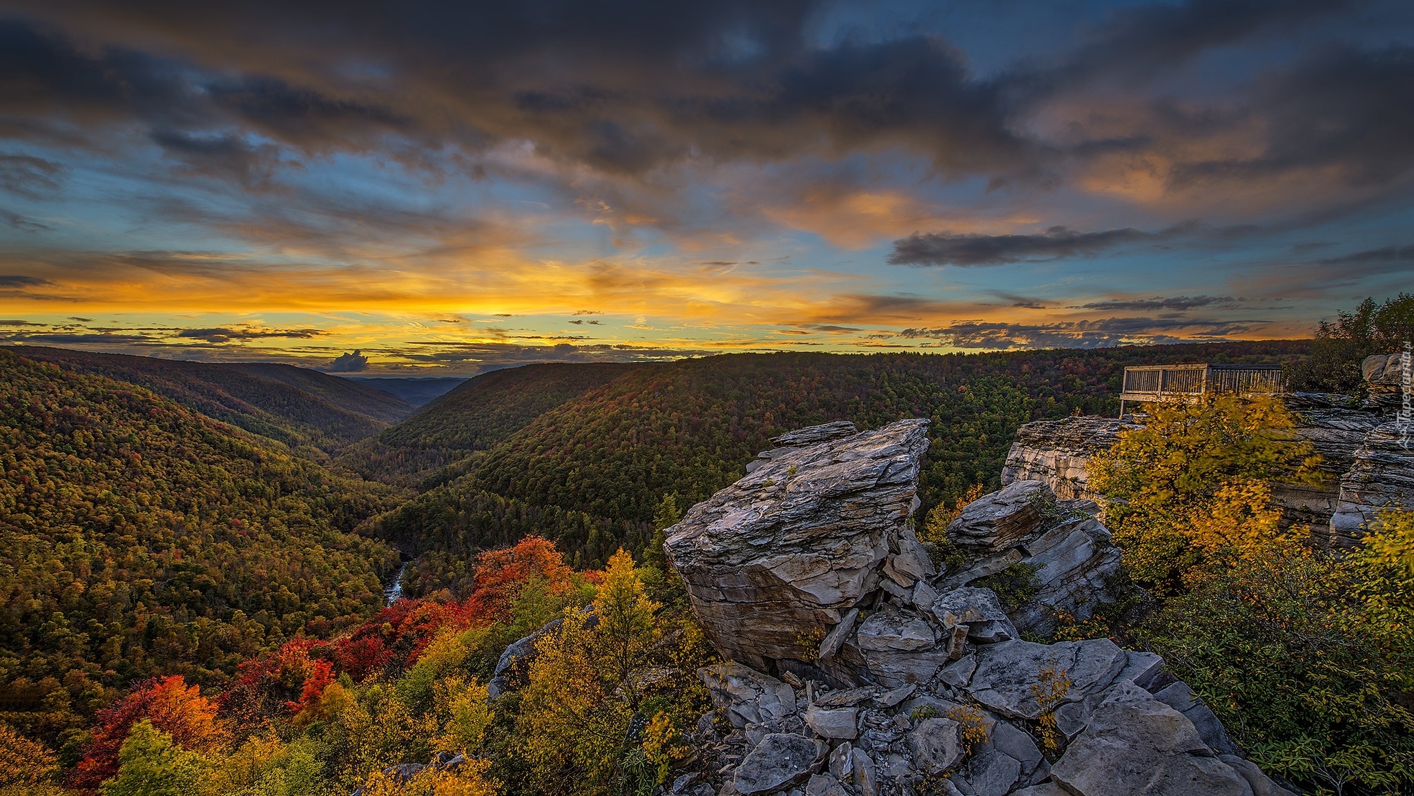 Edytor tapety: Zachód słońca, Góry, Lasy, Jesień