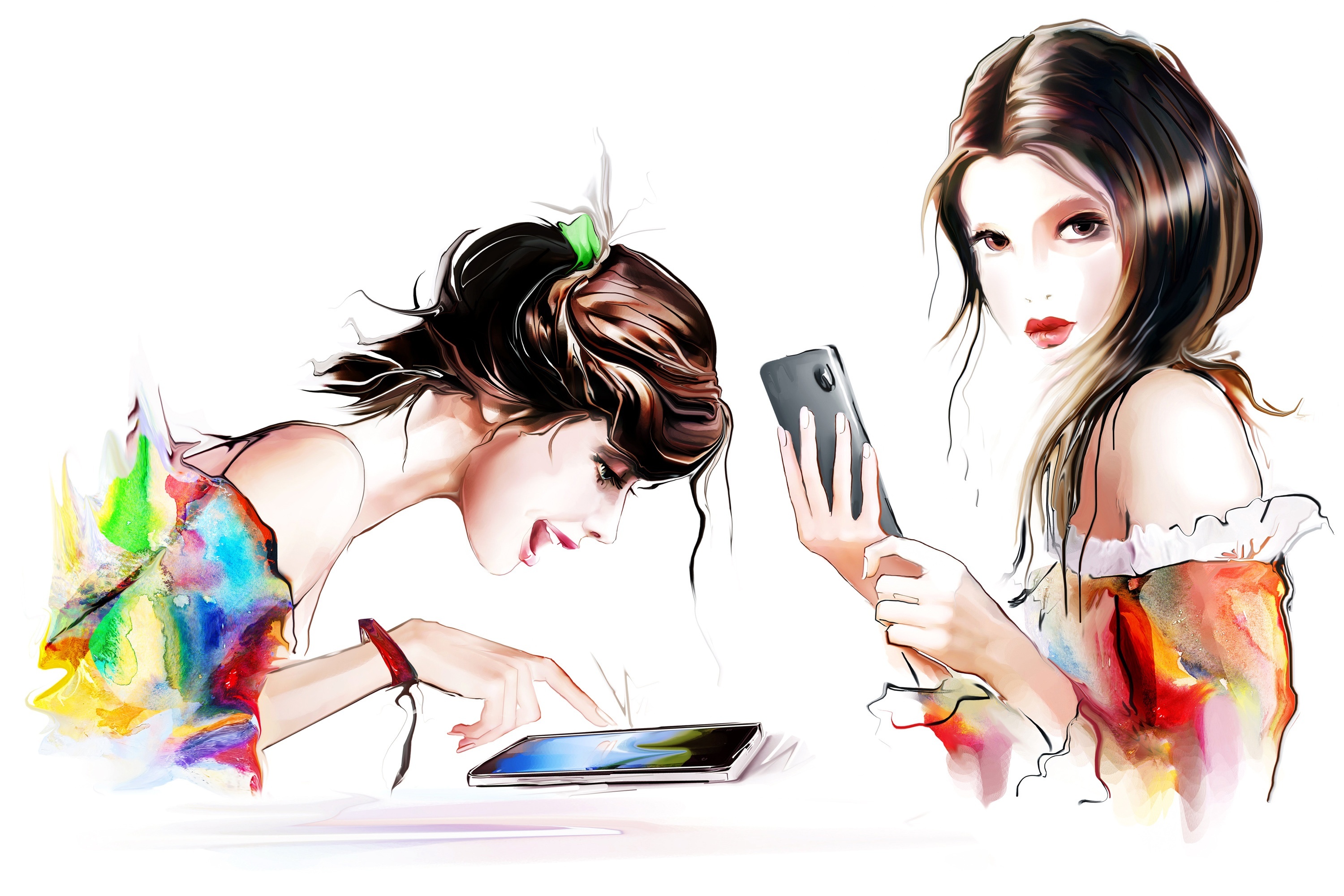 Edytor tapety: Młode Dziewczyny, Tablet, Komórka, Grafika, 2D