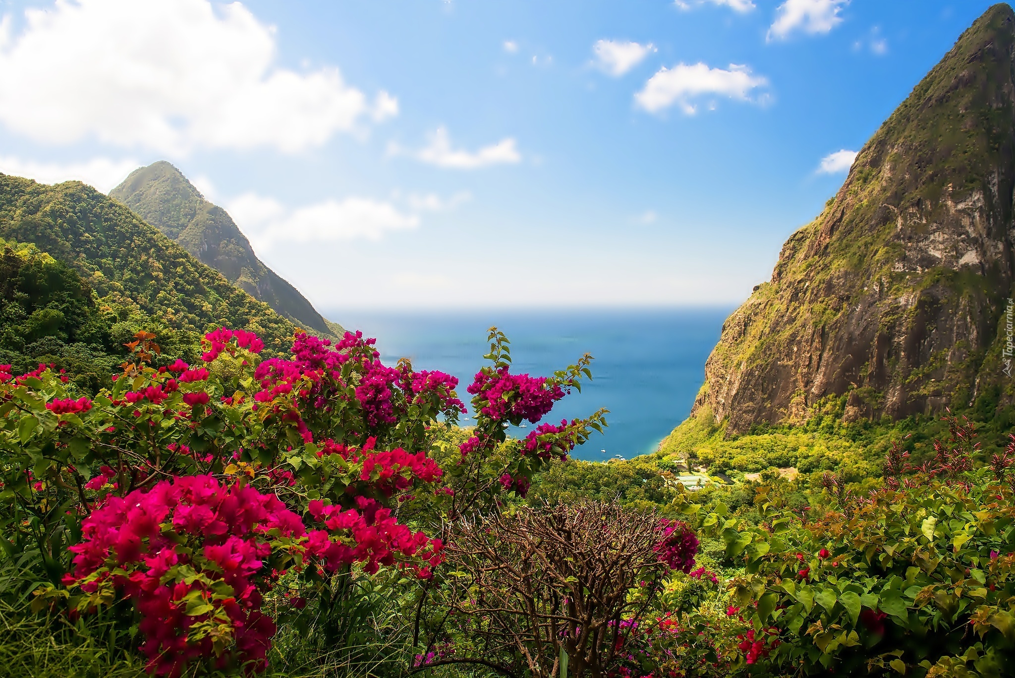 Edytor tapety: Góry, Morze, Krzewy, Kwiaty