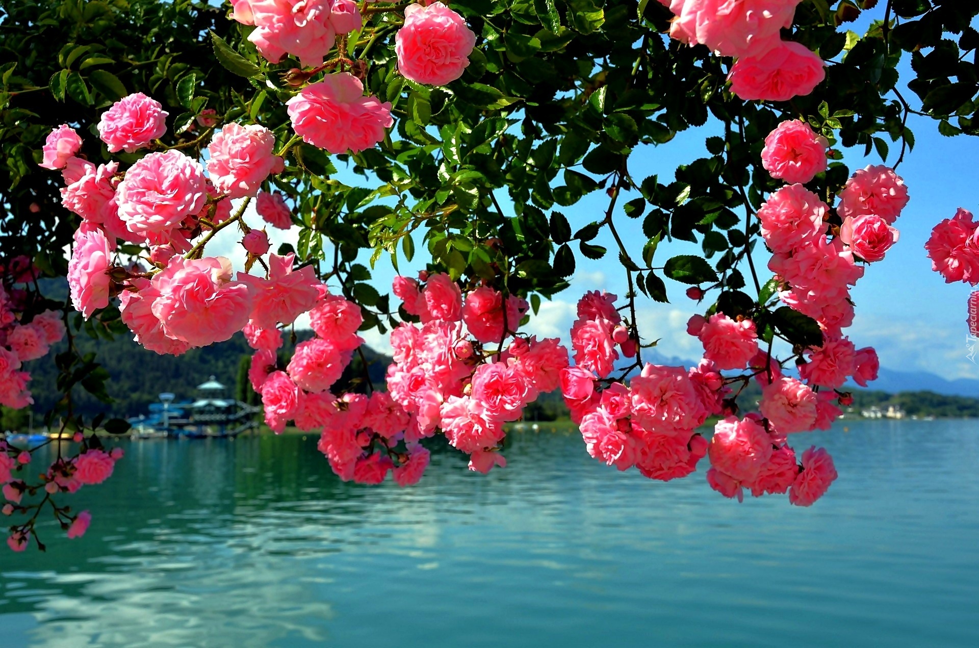 Edytor tapety: Róże, Rzeka, Krajobraz