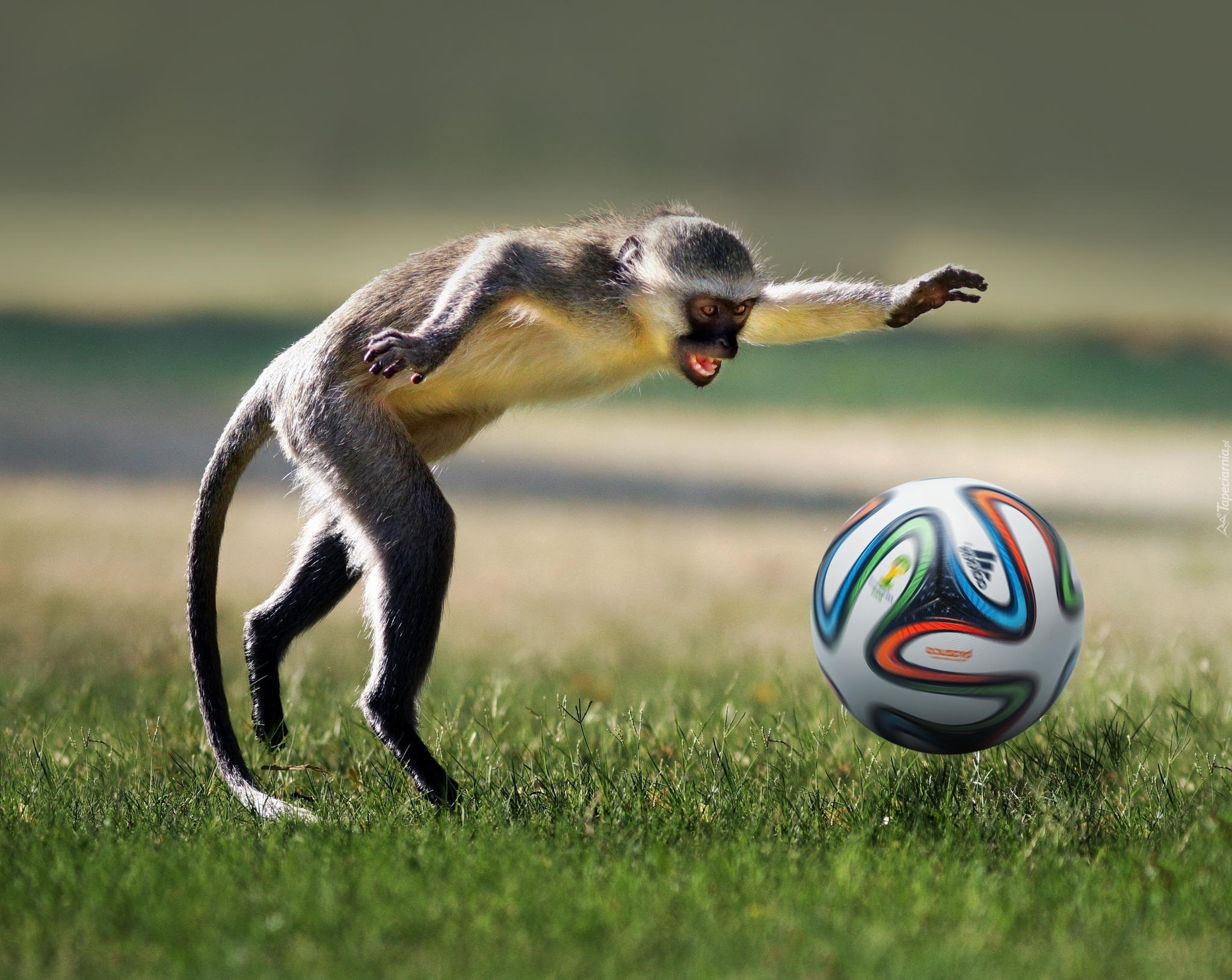 Edytor tapety: Małpa, Piłka, Trawa, Futbol, Śmieszne