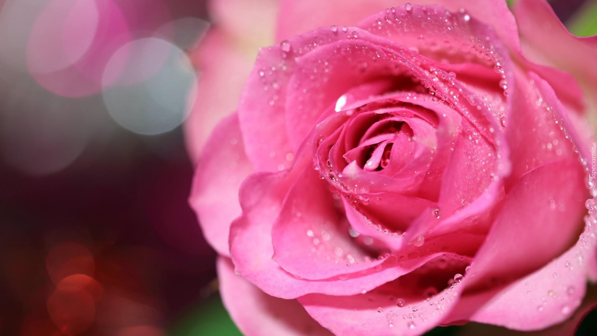 Edytor tapety: Różowa, Róża, Krople, Rosy, Płatki