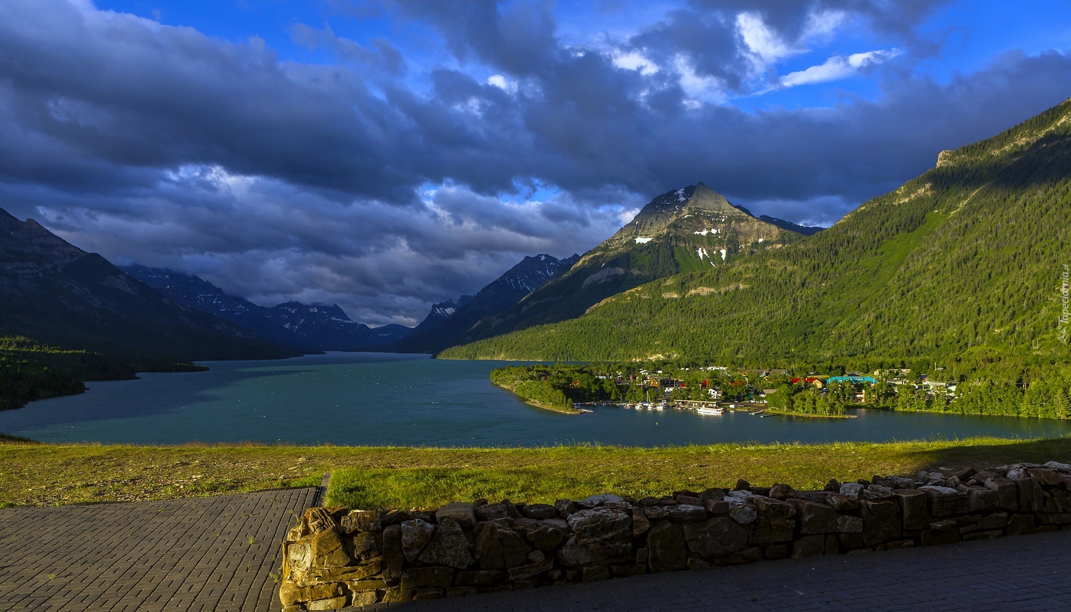 Edytor tapety: Chmury, Góry, Jezioro, Budynki, Kanada