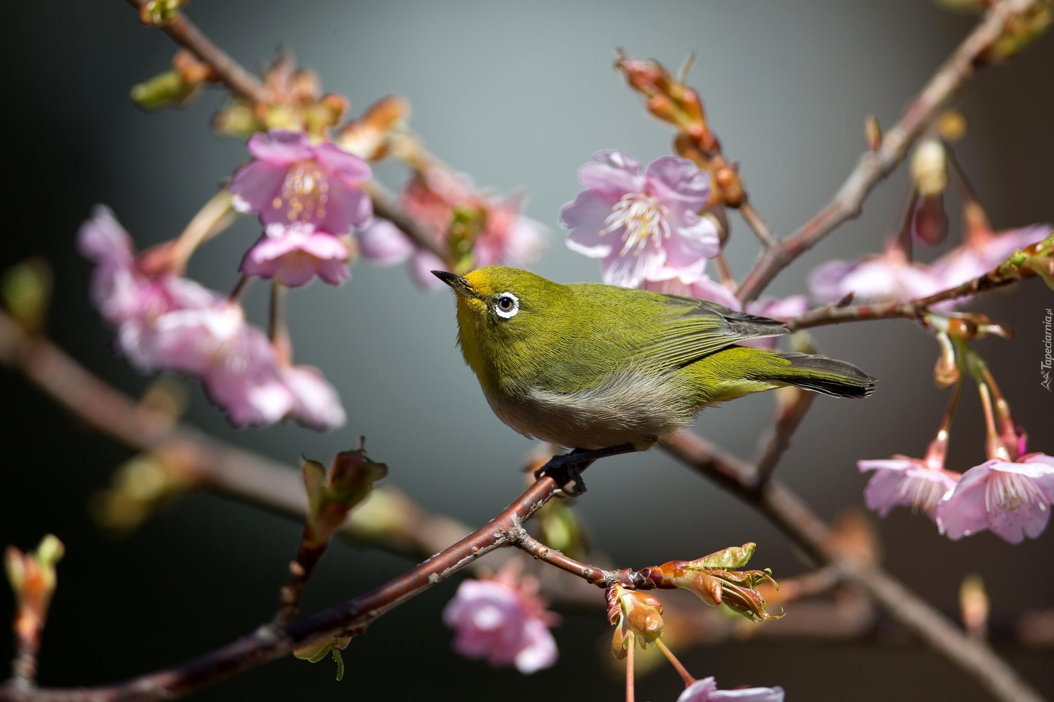Edytor tapety: Ptaszek, Szlarnik, Gałązki, Kwiaty, Wiosna