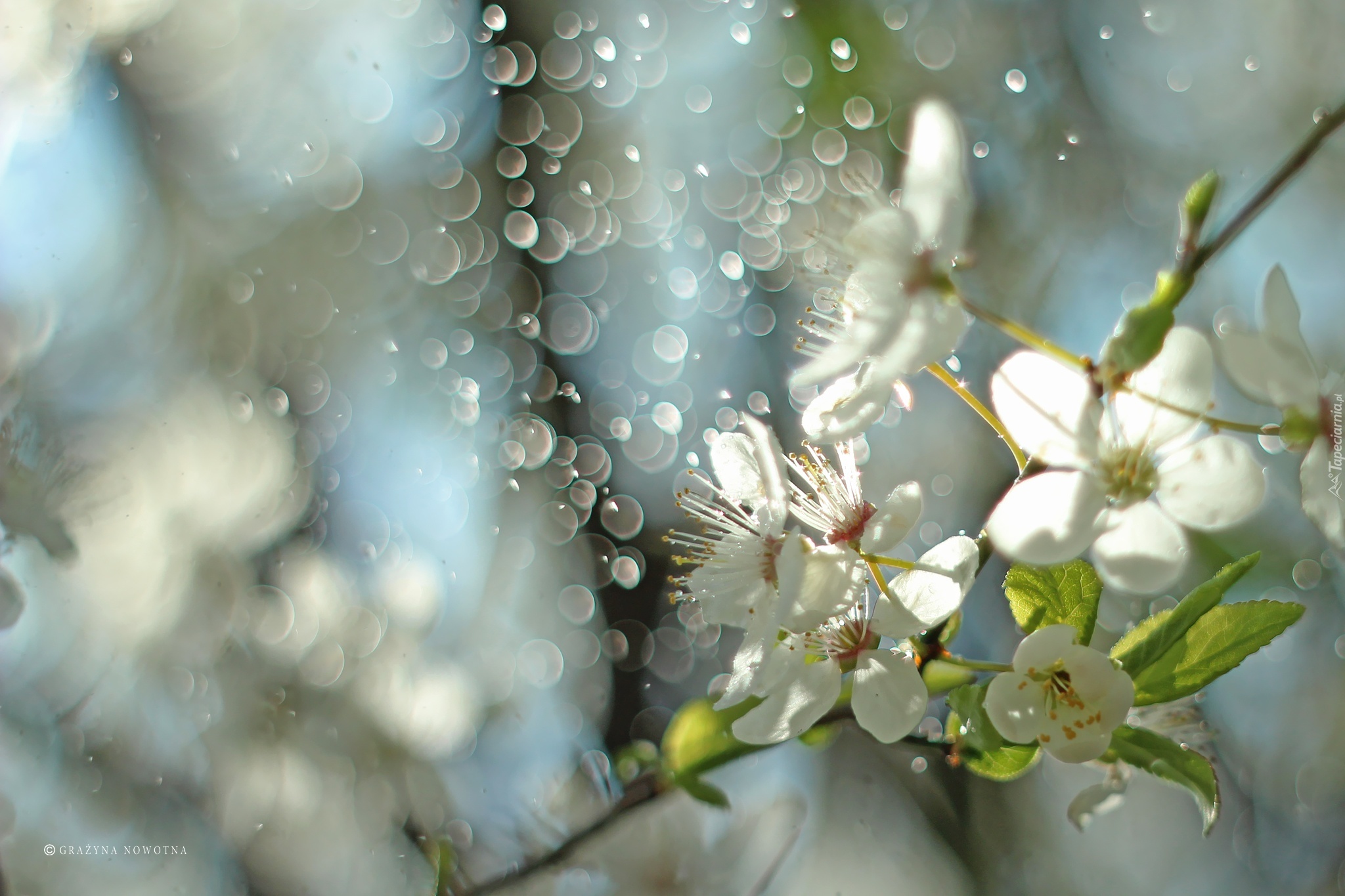 Edytor tapety: Białe, Kwiaty, Drzewo, Owocowe, Bokeh