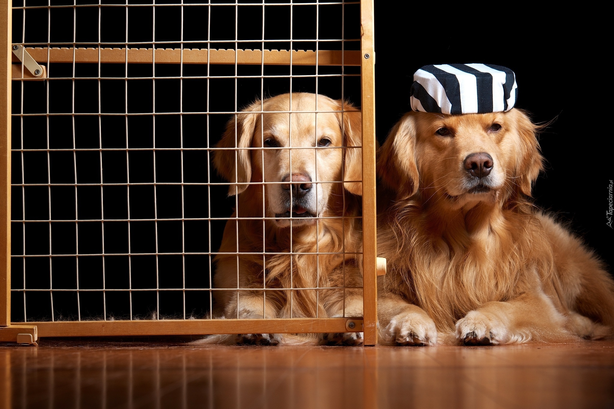 Edytor tapety: Dwa, Pieski, Golden Retriever, Krata